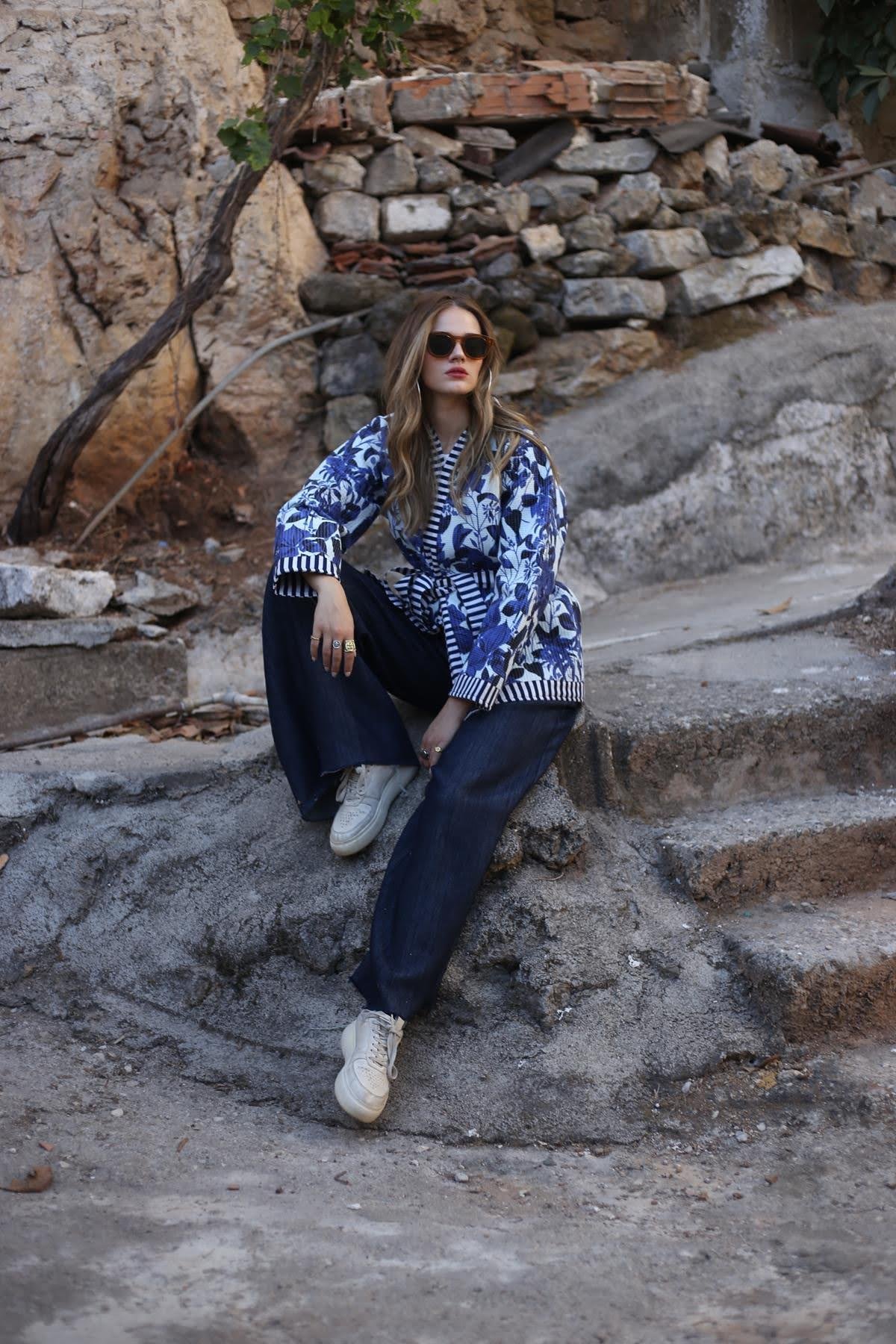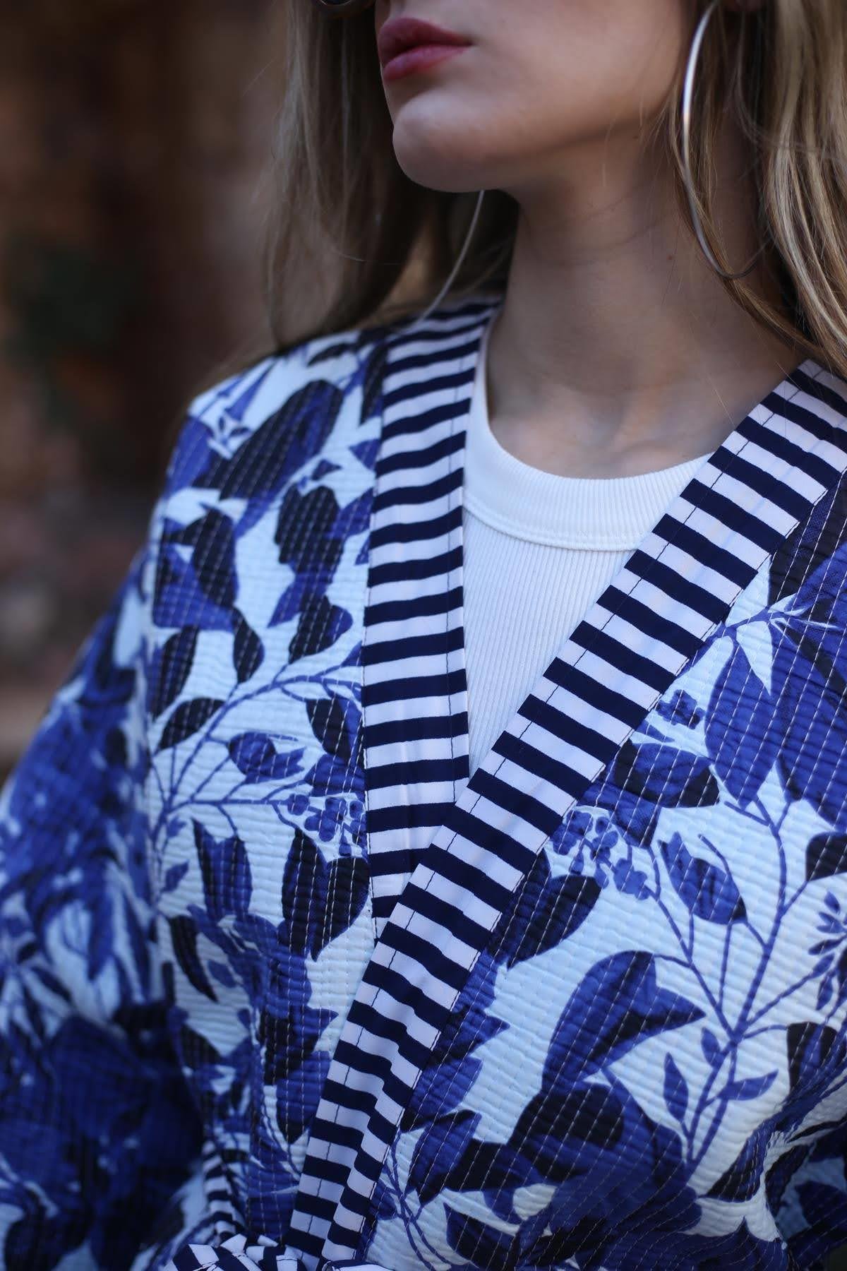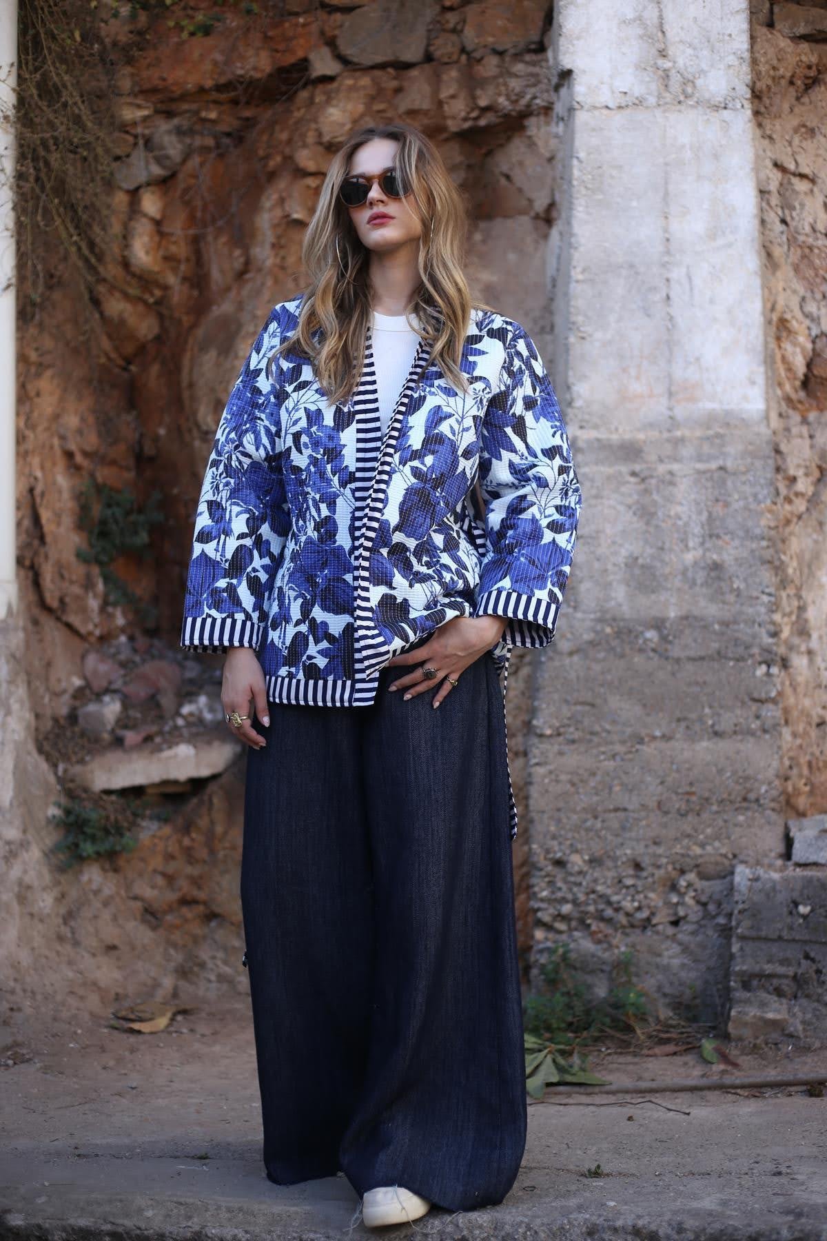 Saks Mavisi Desenli Garnili Kapitone Ceket (KC-AS-019-PA-SMA-STD)
