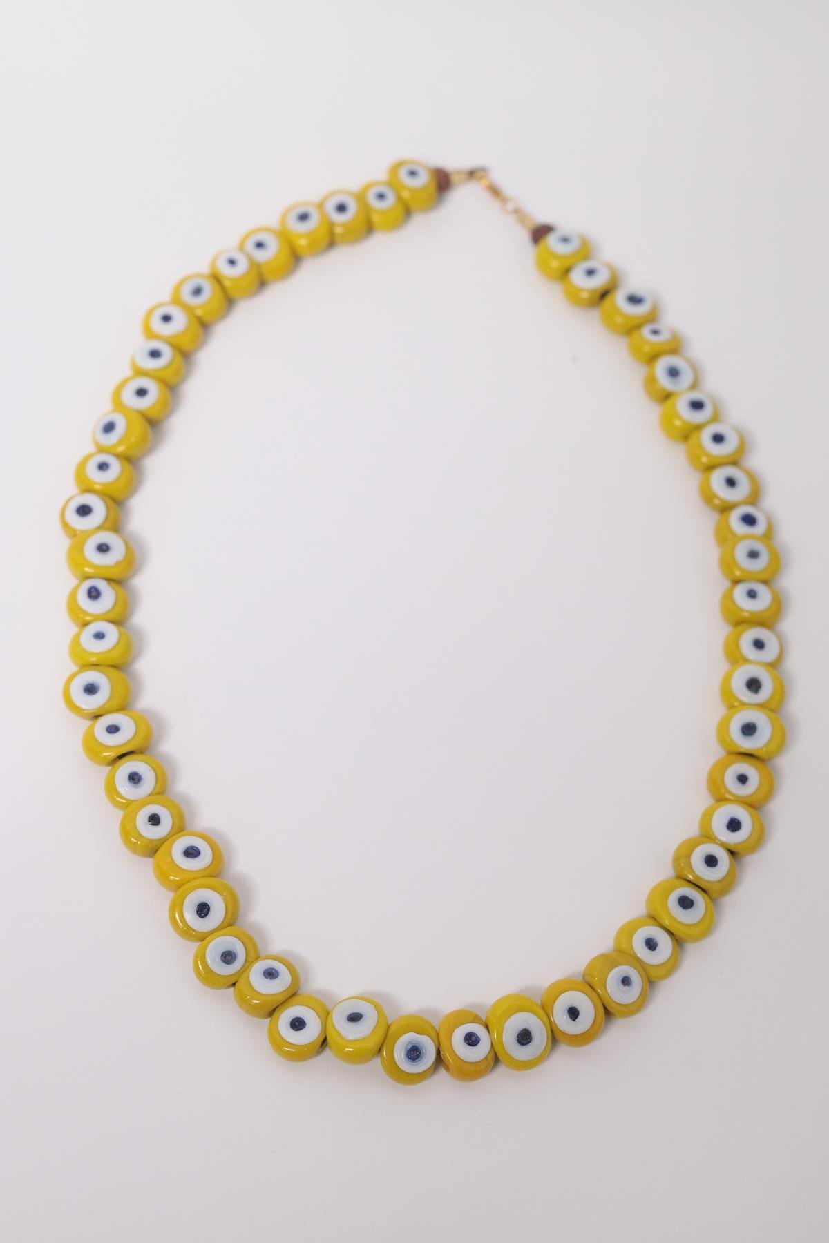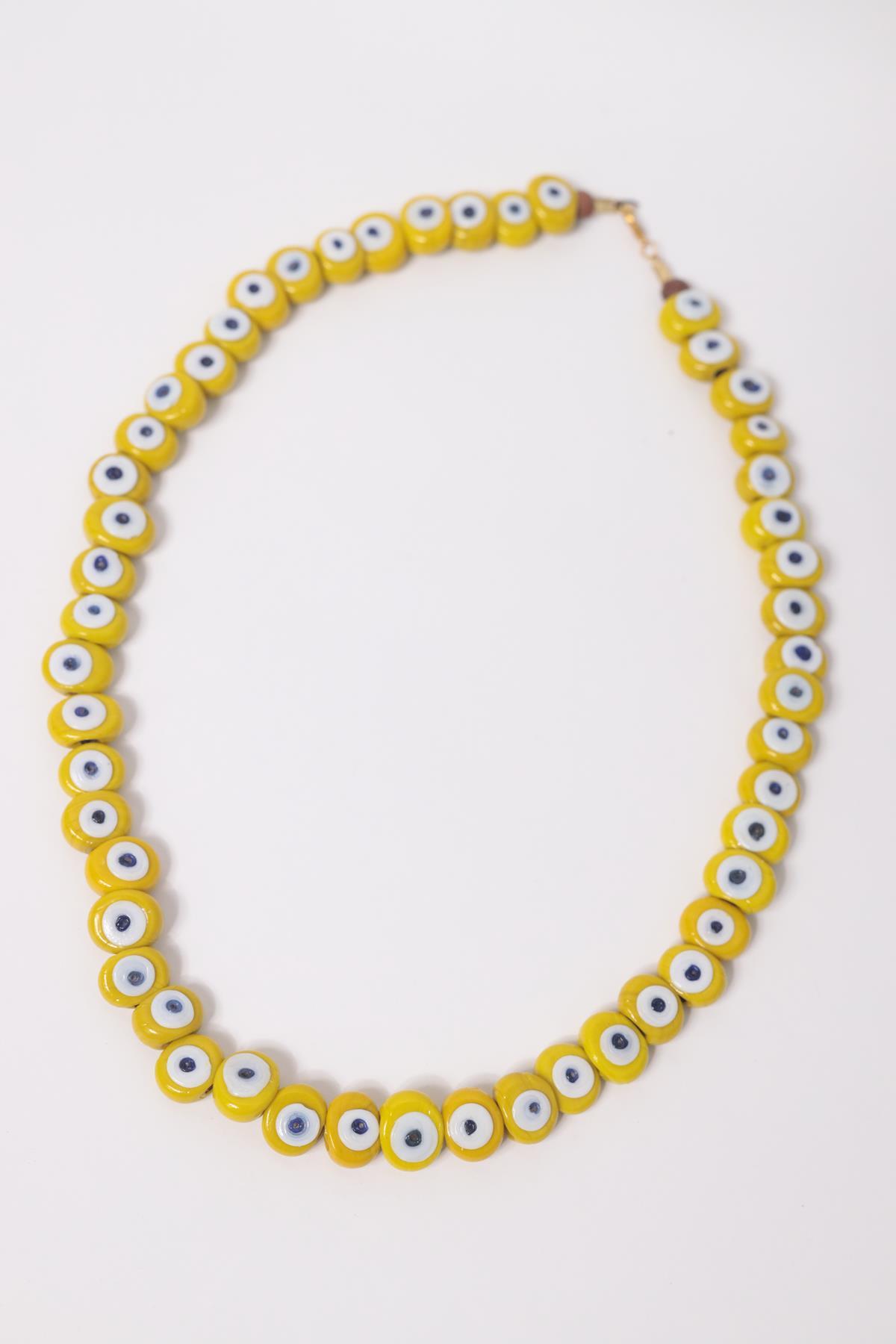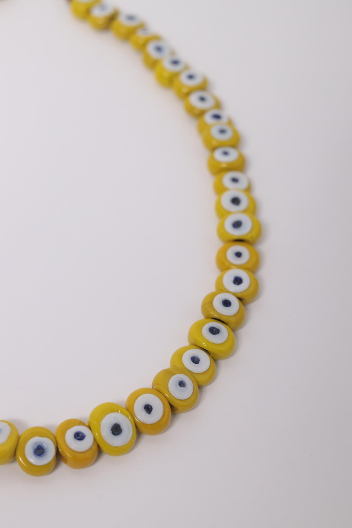 Sarı Cam Nazar Boncuklu Tasarım Kolye