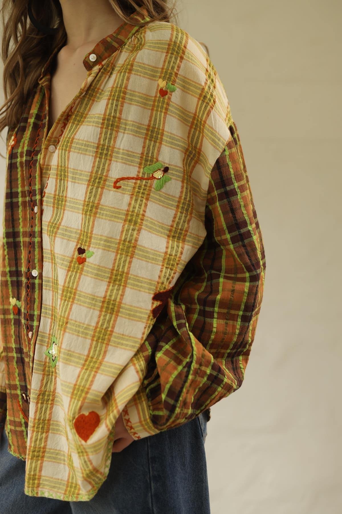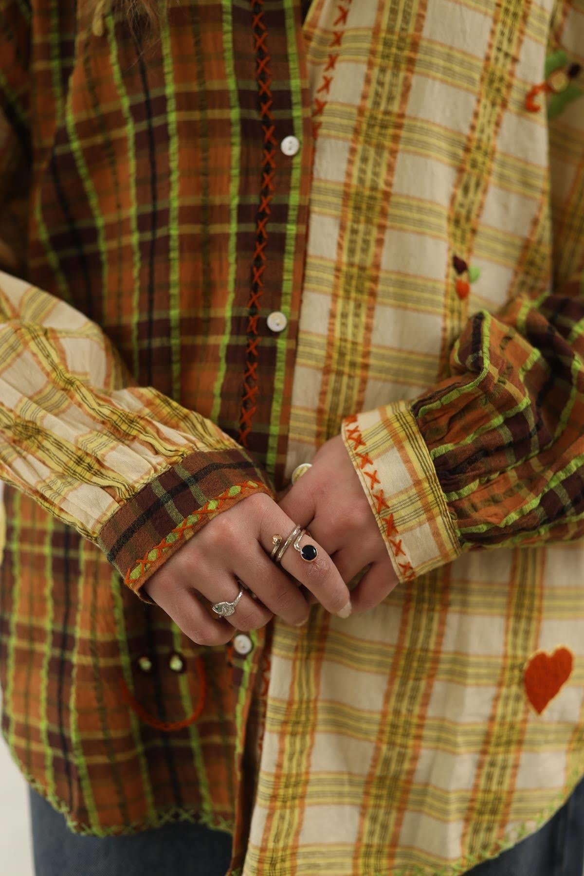 Sarı Pul Detaylı İşlemeli Ekose Gömlek (KG-SIT-003-PA-SA-STD)
