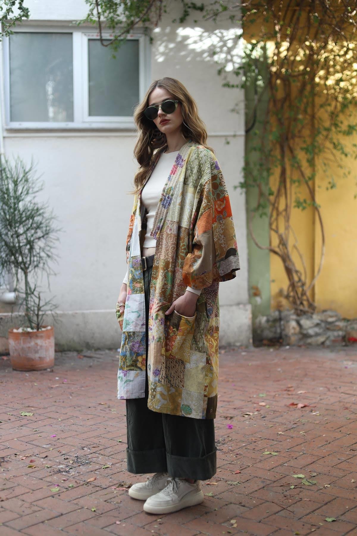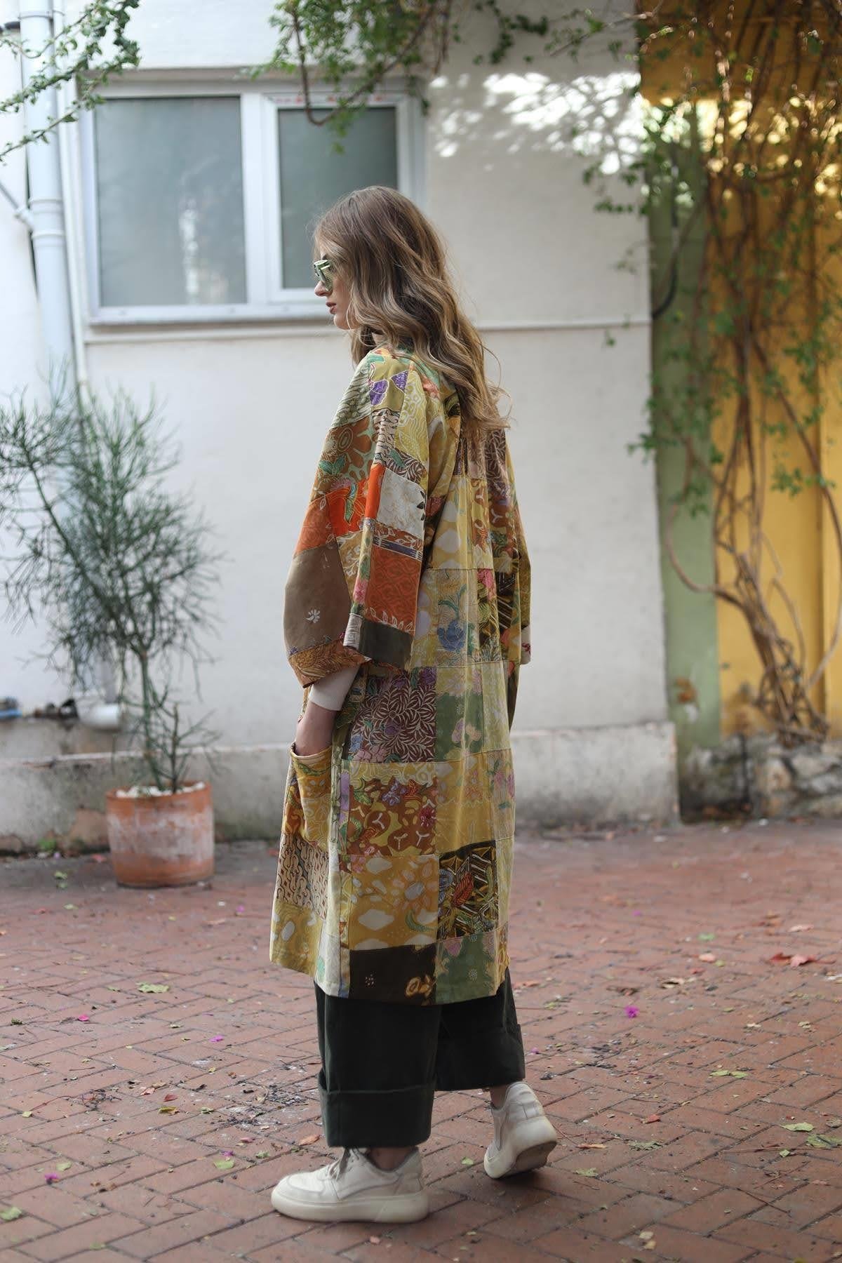 Sarı Tasarım Patchwork Kaftan