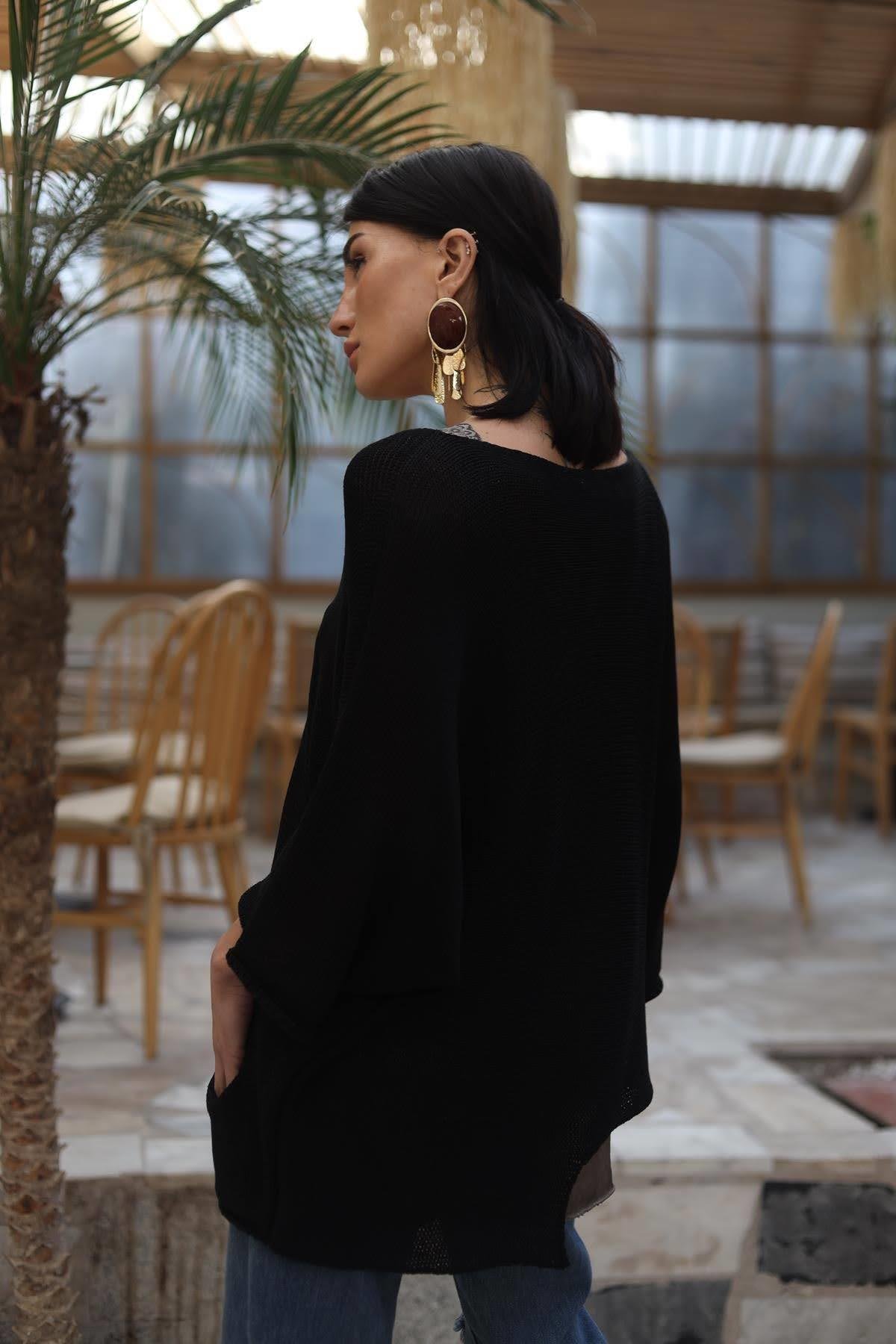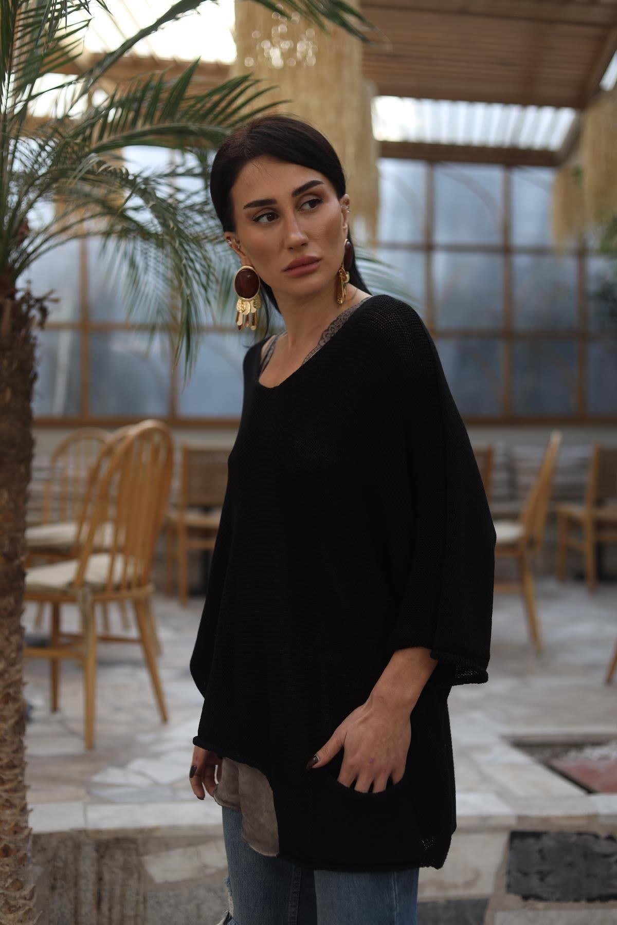 Siyah Asimetrik Kesim Cepli Triko Bluz (KB-FAL-025-PA-SI-STD)