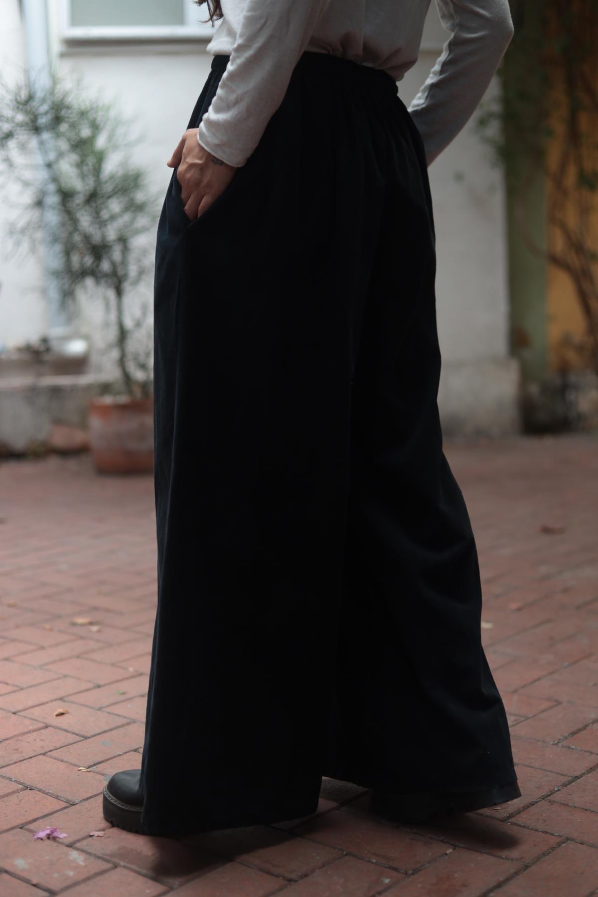 Siyah Beli İpli Kadife Palazzo Pantolon (KP-PM-054-PA-SI-STD)