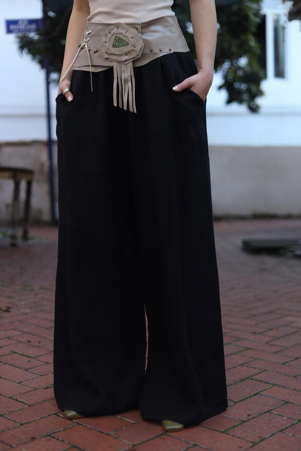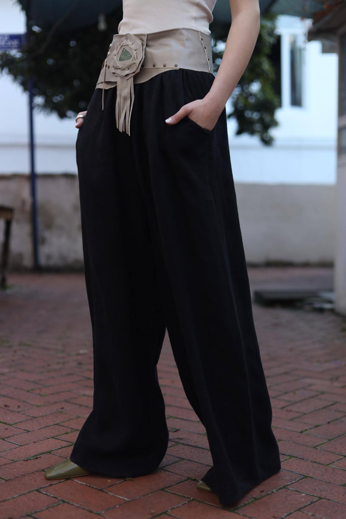 Siyah Beli Lastikli Asena Pantolon (KP-FAL-010-KTN-SI-STD)