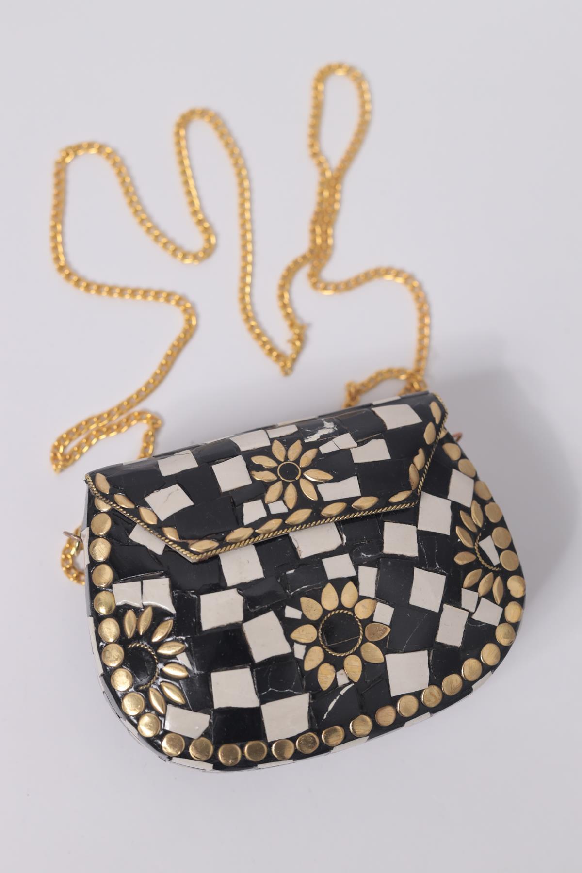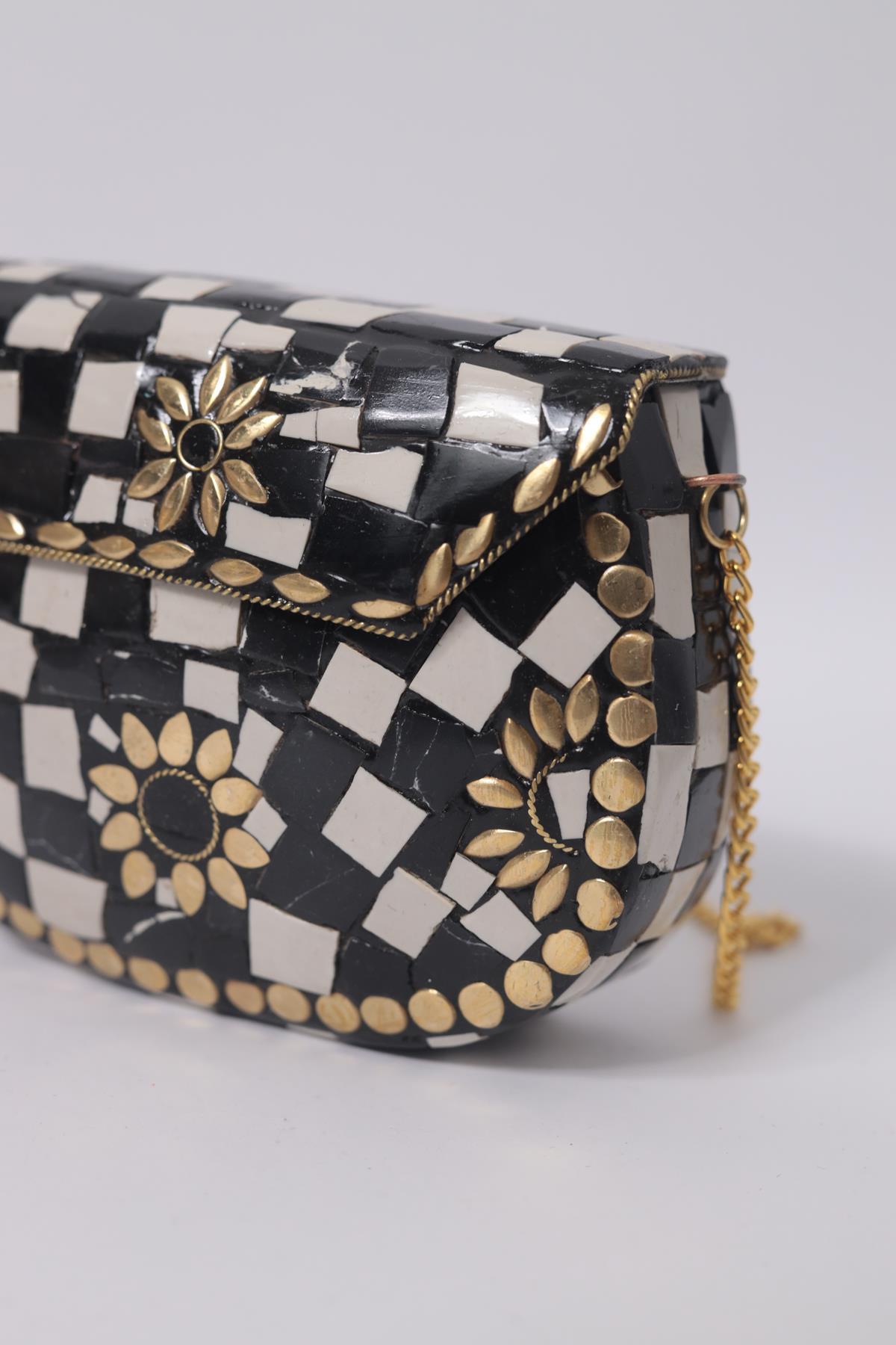 Siyah Beyaz Taşlı Özel Tasarım Zarif Çanta