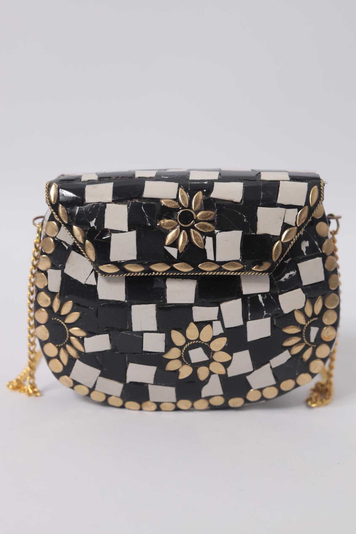 Siyah Beyaz Taşlı Özel Tasarım Zarif Çanta