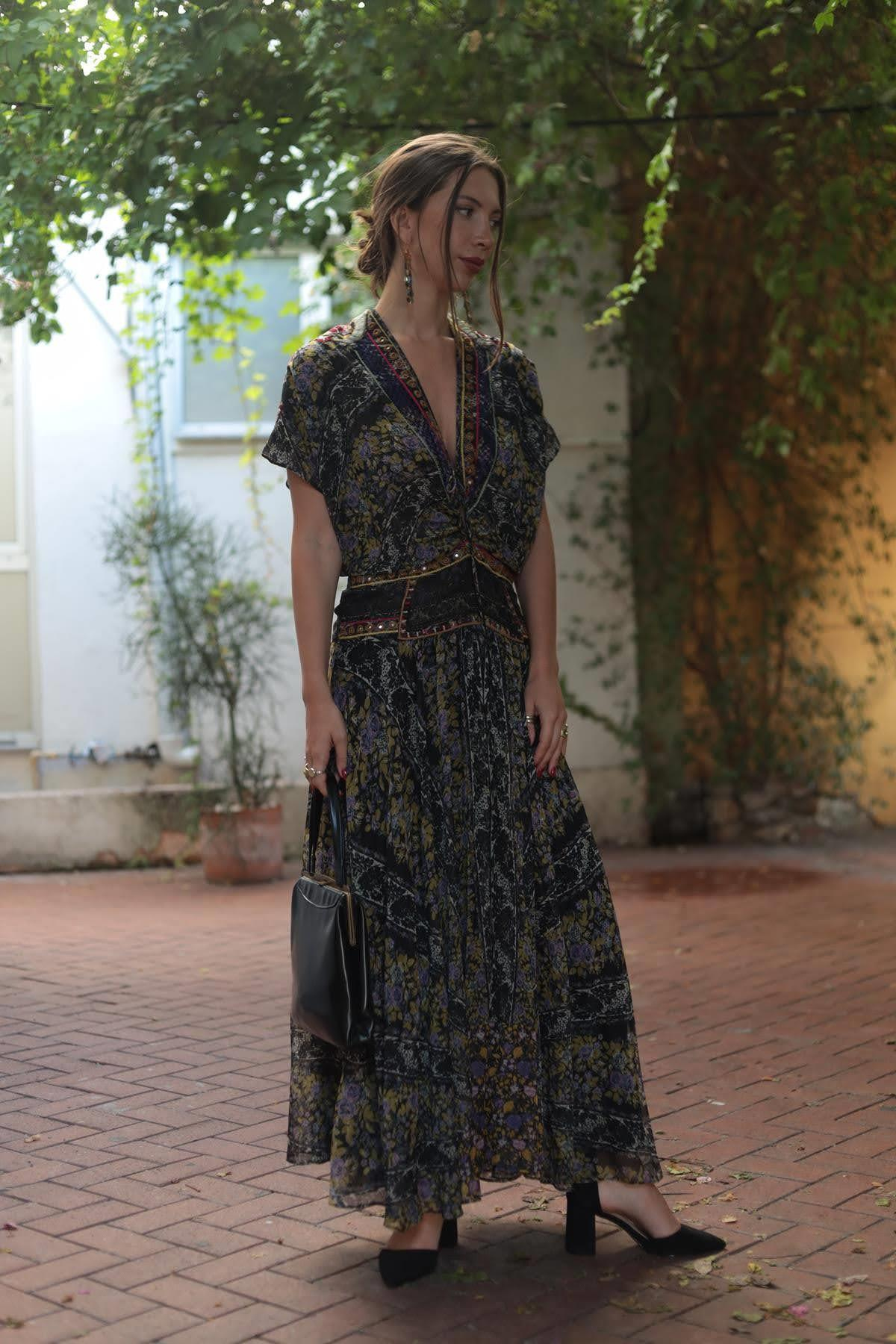 Siyah Nakışlı Ayna Detaylı Şifon Elbise (KE-NAT-027-PO-SI-STD)