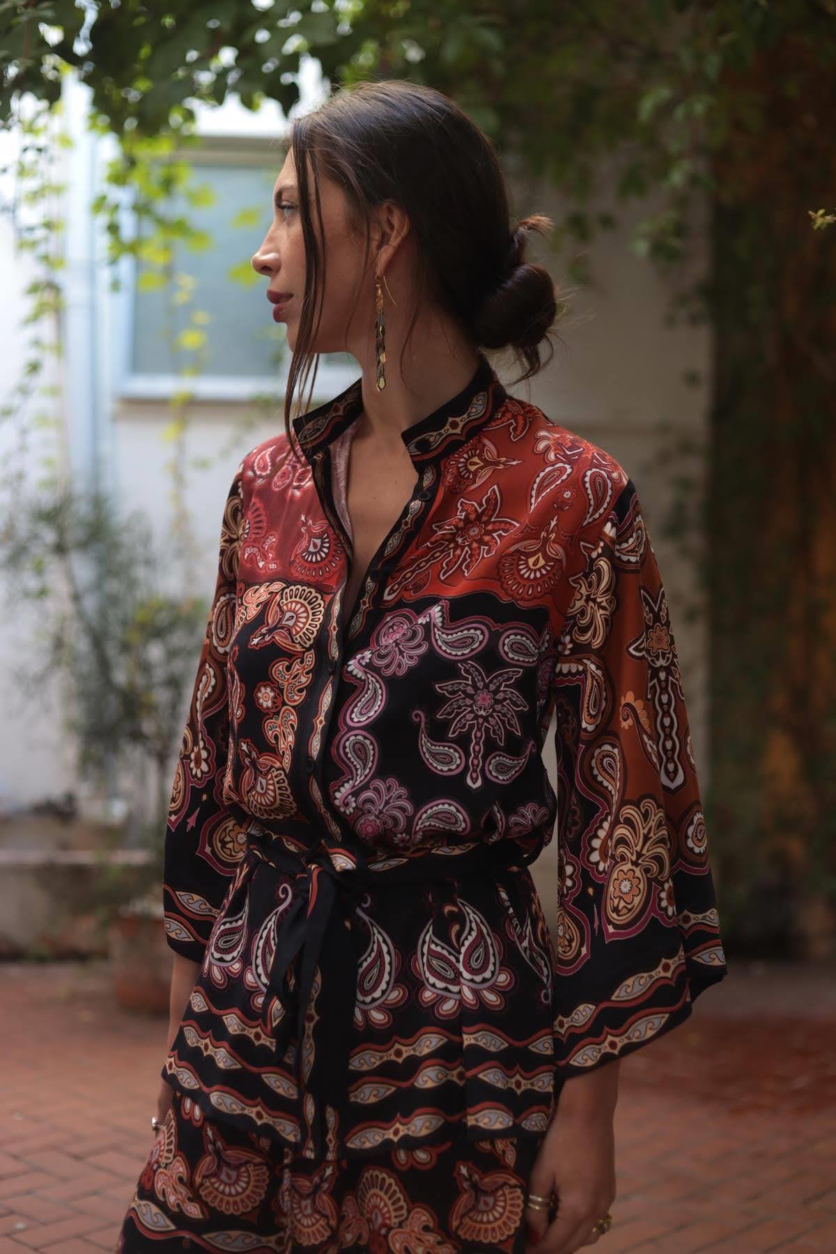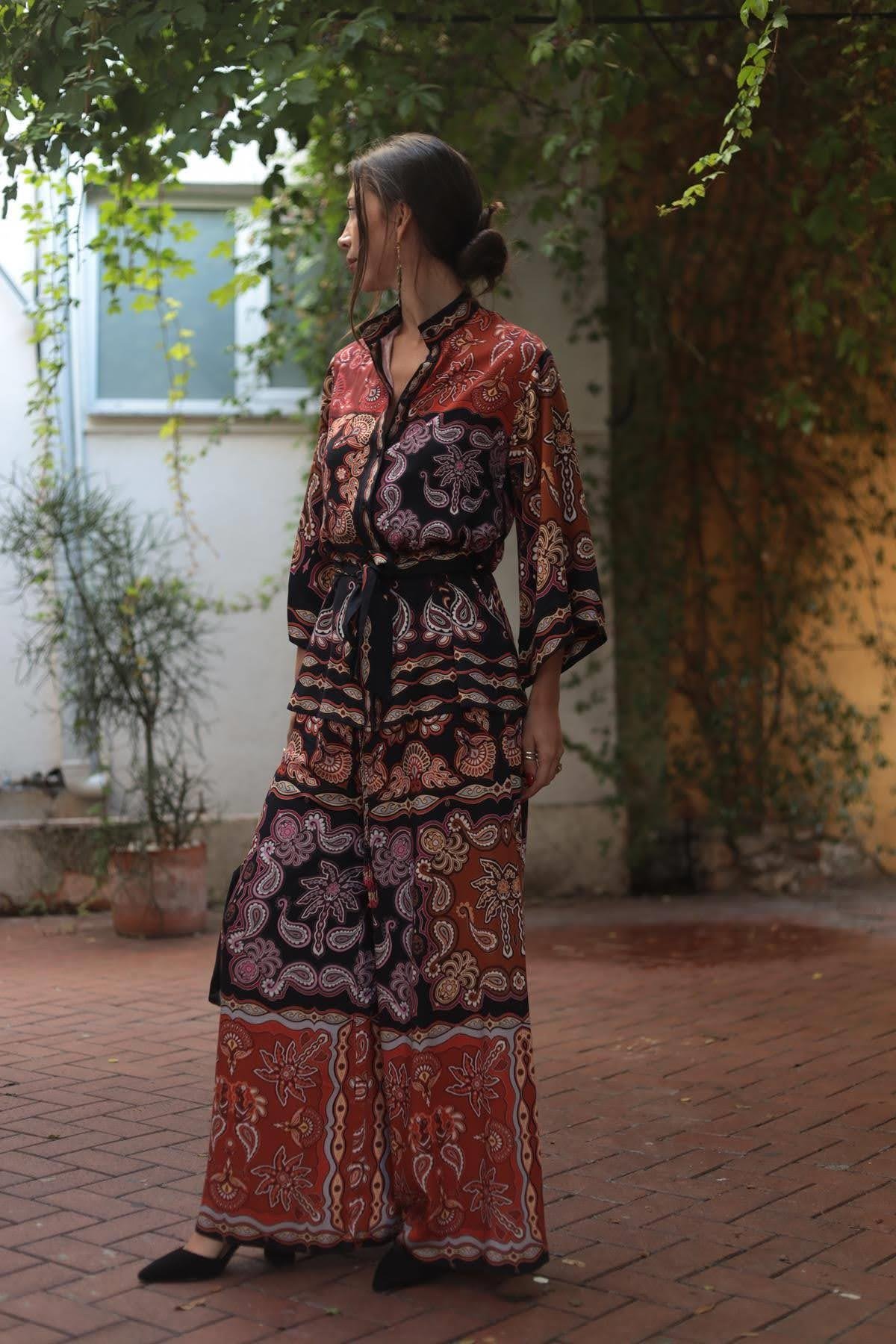 Siyah Otantik Desenli Gömlek Pantolon Takım