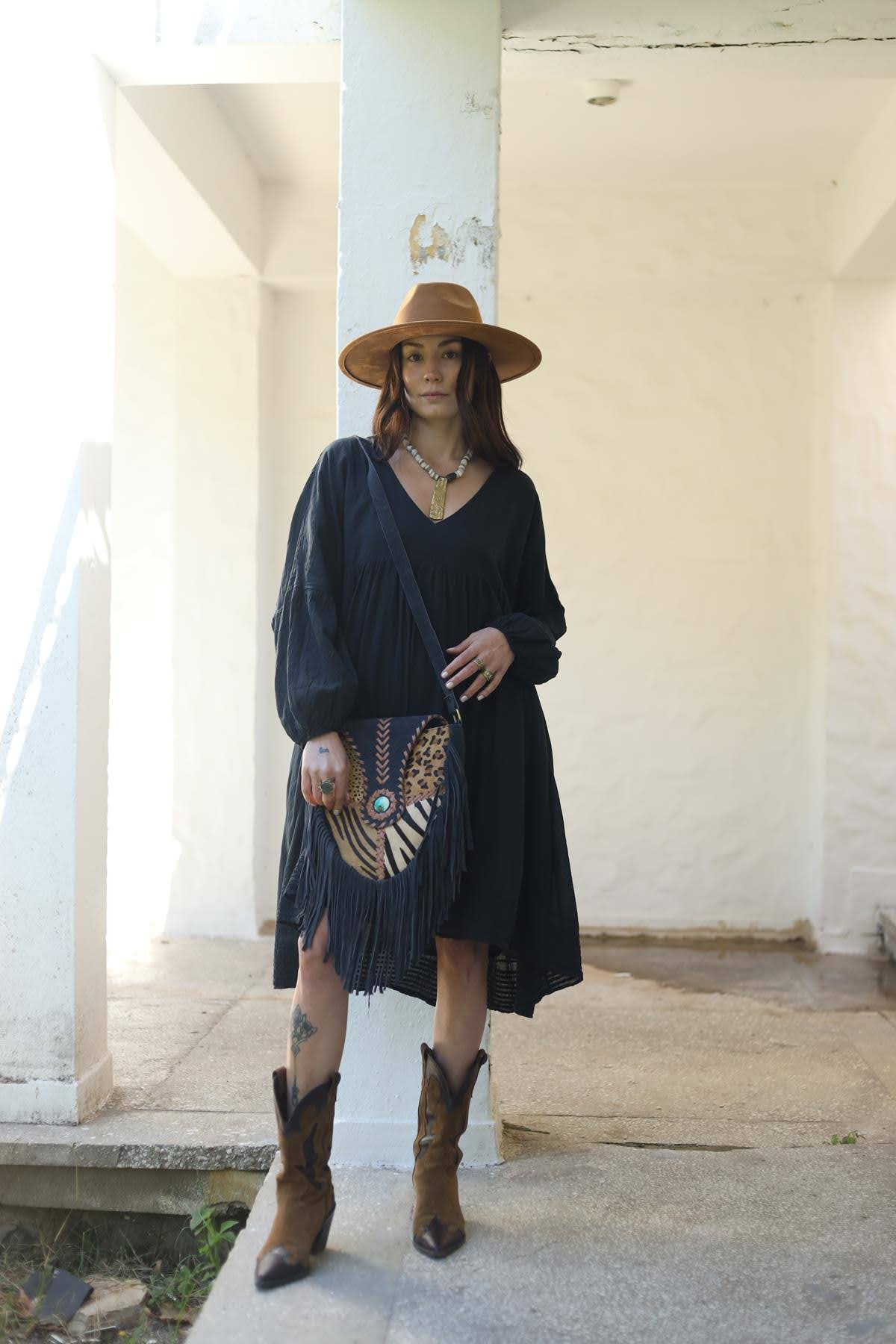 Siyah V Yaka Eteği Dikiş Detaylı Elbise (KE-SIT-008-PA-SI-STD)