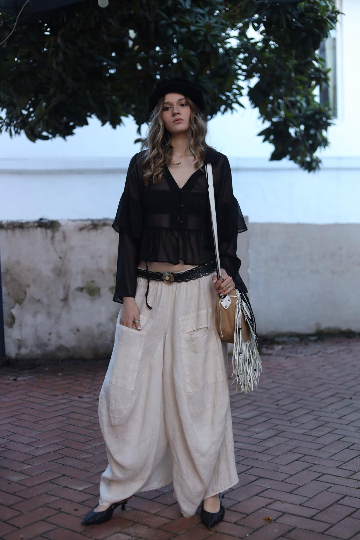 Siyah Volanlı Şifon Crop Gömlek (KG-CR-015-PO-SI-S)