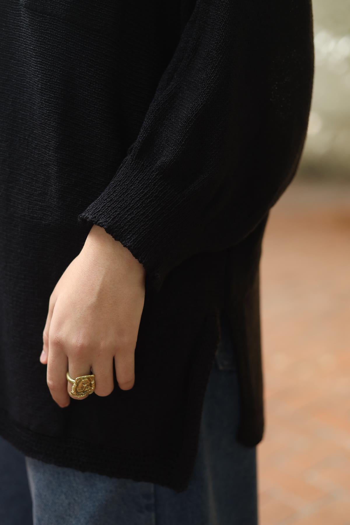 Siyah Yaka Detaylı Yırtmaçlı Triko Tunik