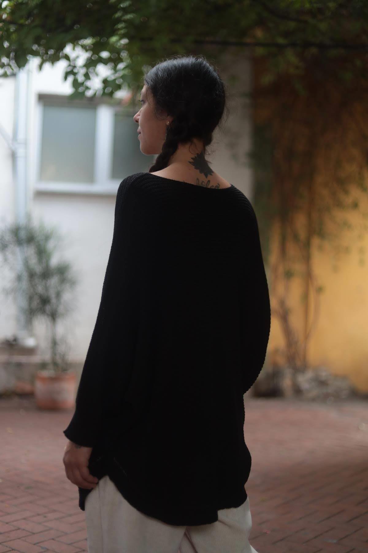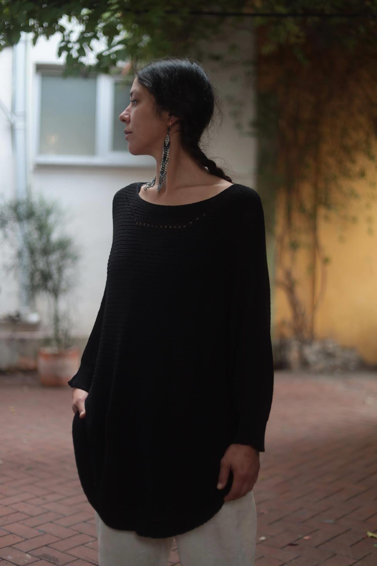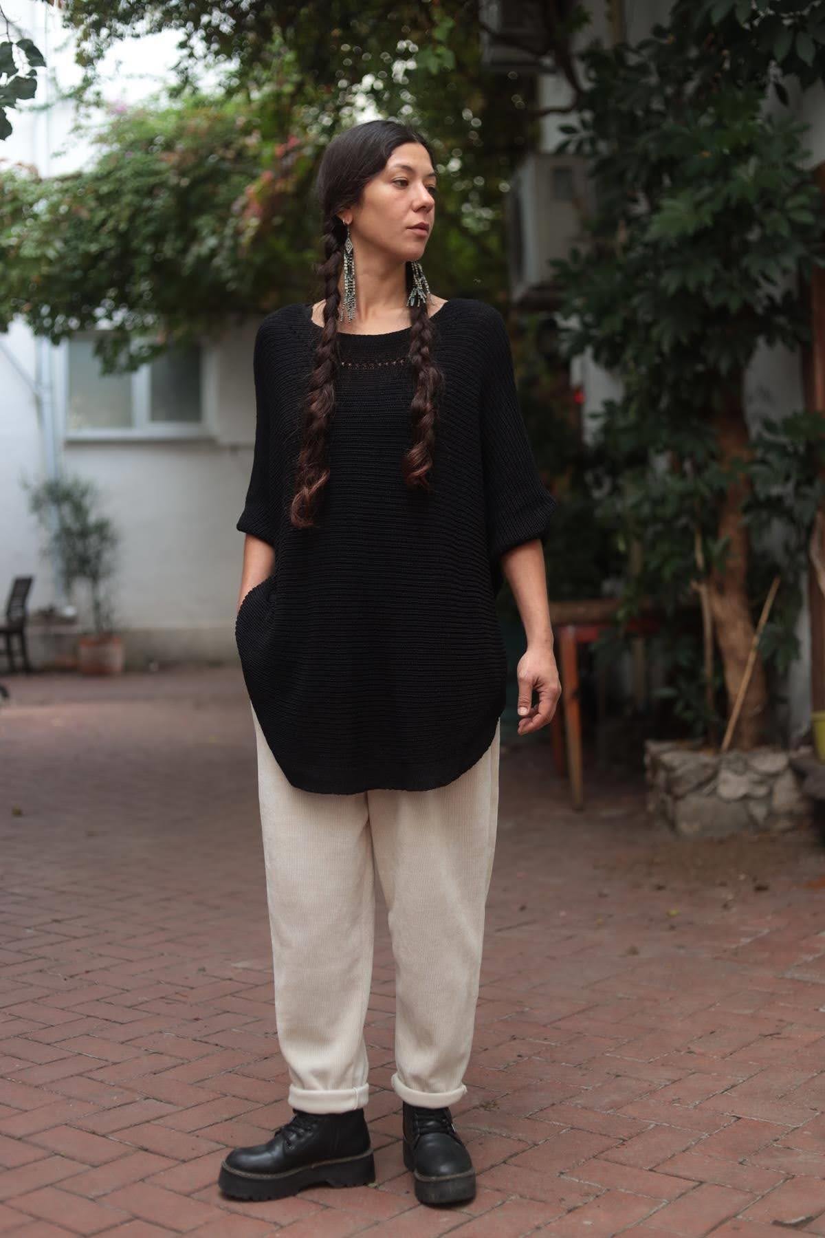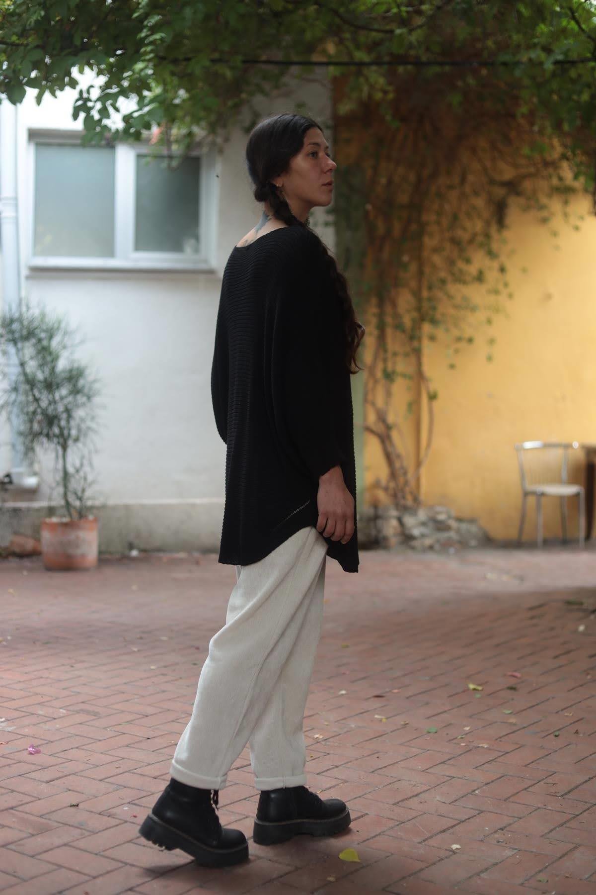 Siyah Yakası Ajurlu Selanik Tunik