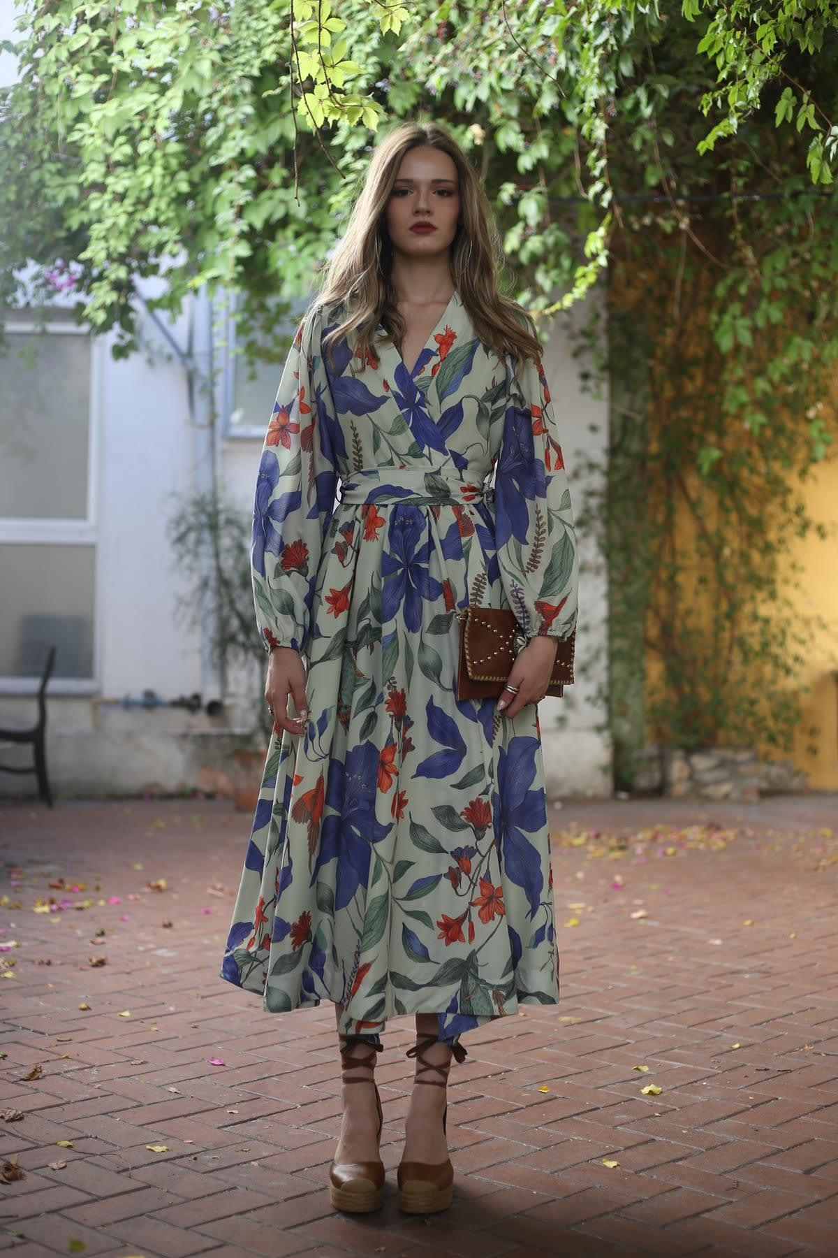 Su Yeşili Desenli Anvelop Elbise (KE-CR-041-PO-SY-S)