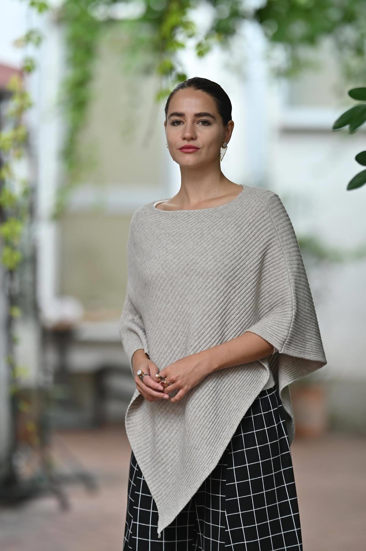 Taş Rengi Fitilli Triko Panço (KB-FAL-027-VI-TAS-STD)