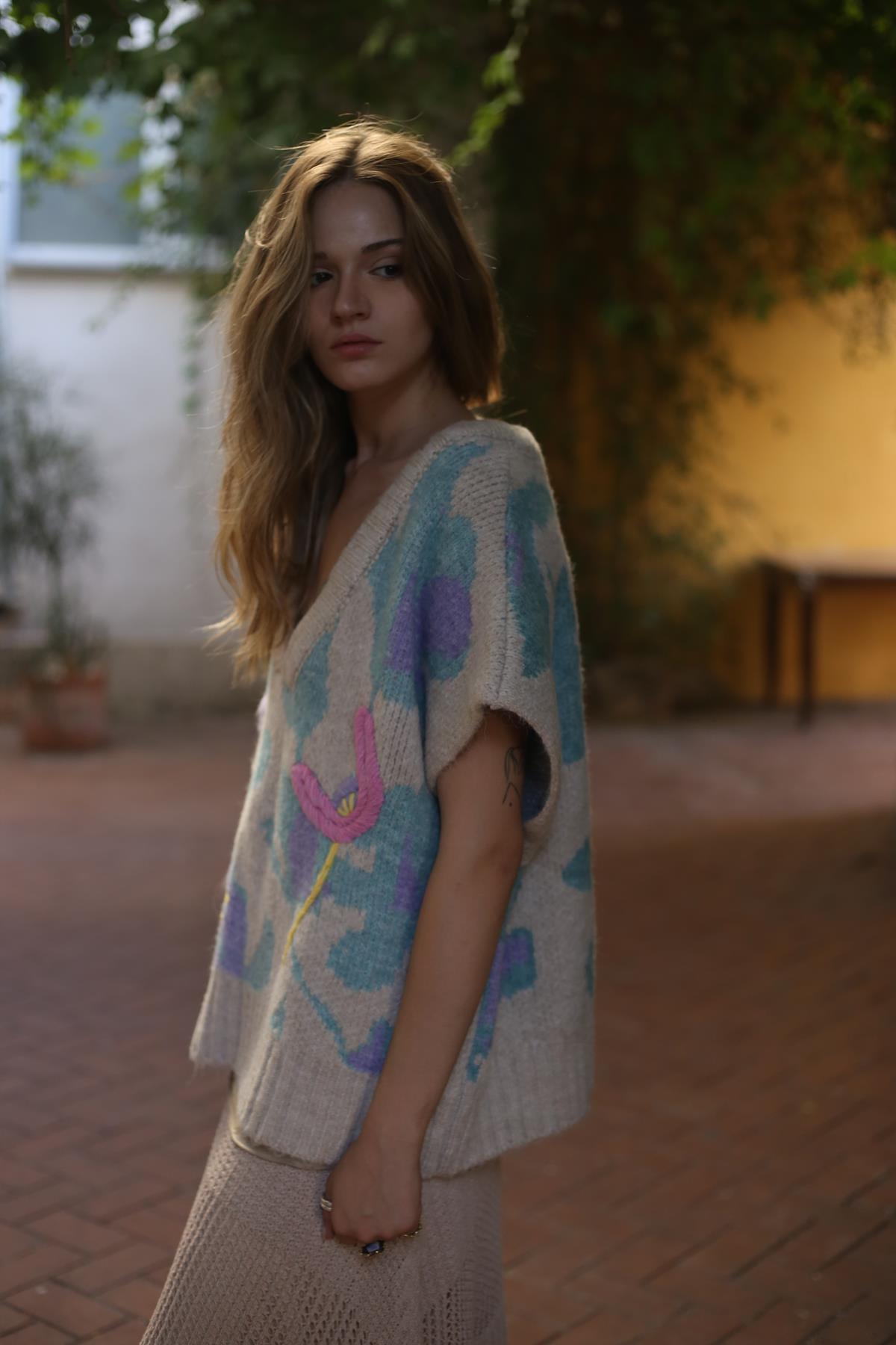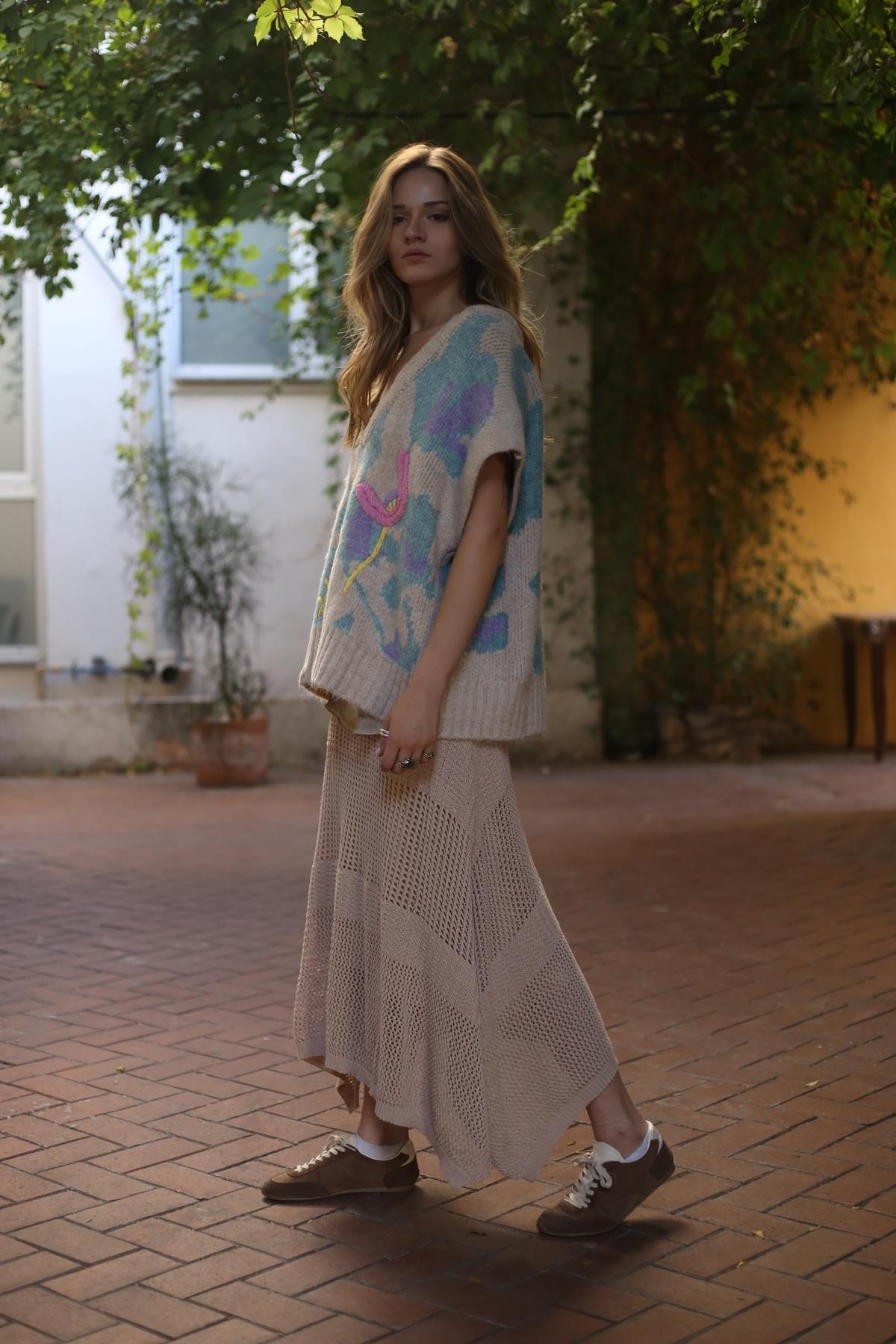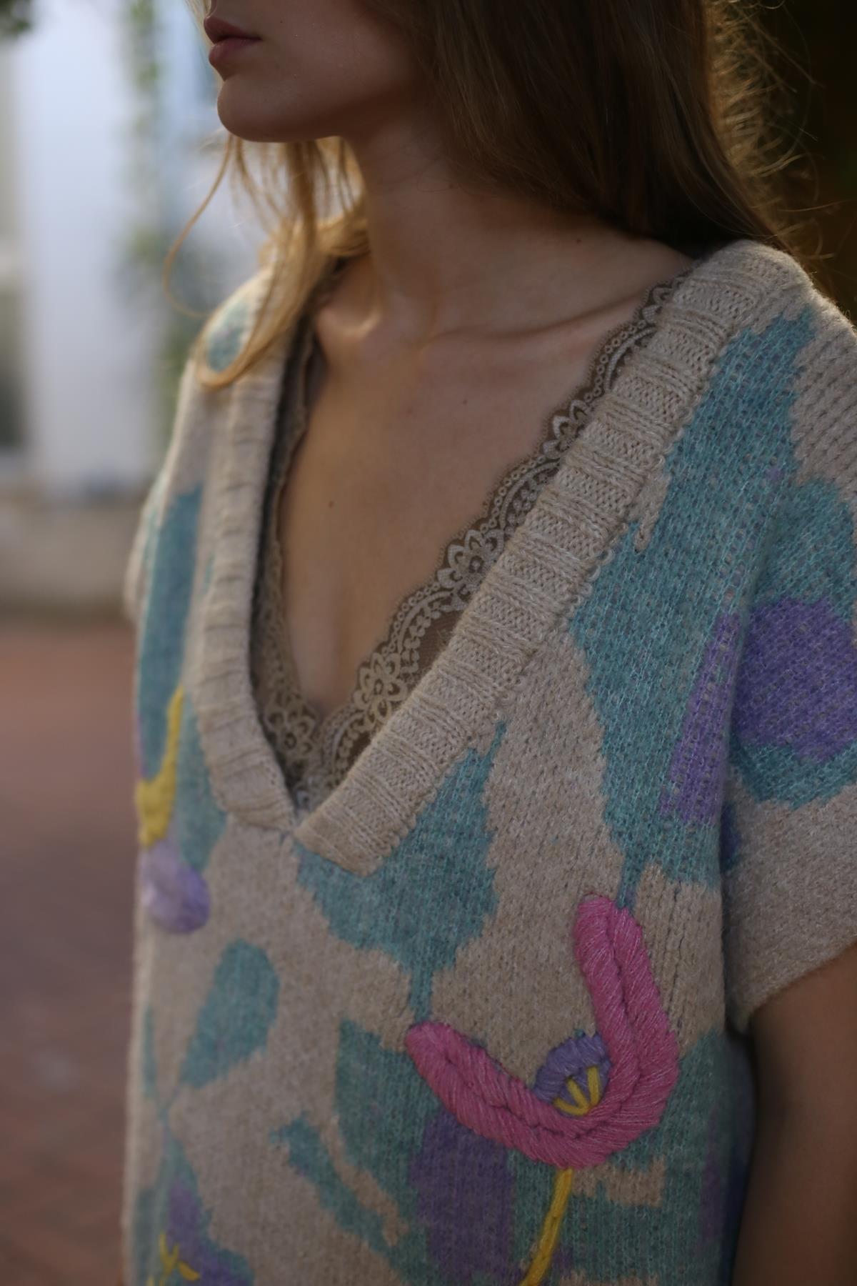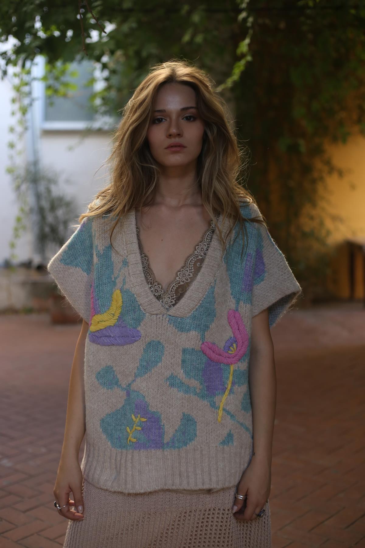 Taş Rengi Kabartmalı Süveter