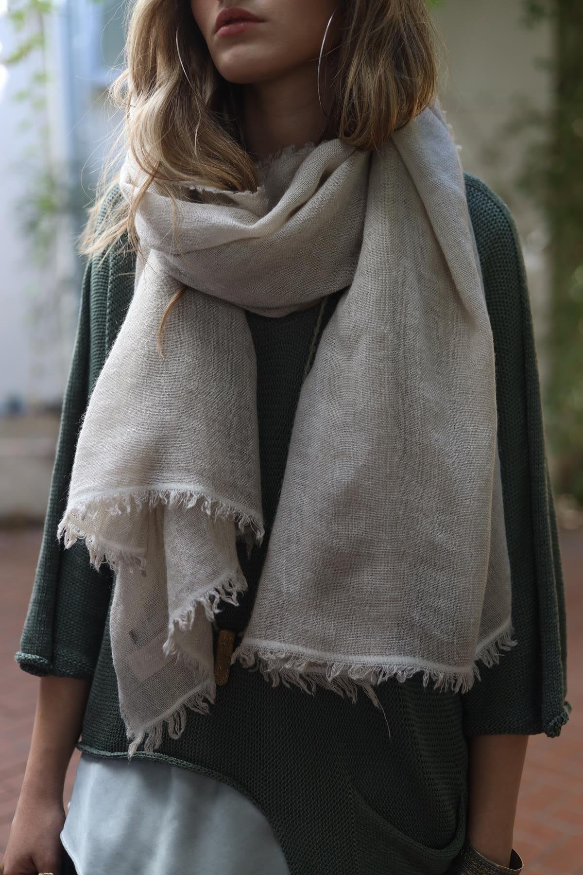Taş Rengi Kenarları Saçaklı Şal (ASL-FAL-001-AK-TAS-STD)