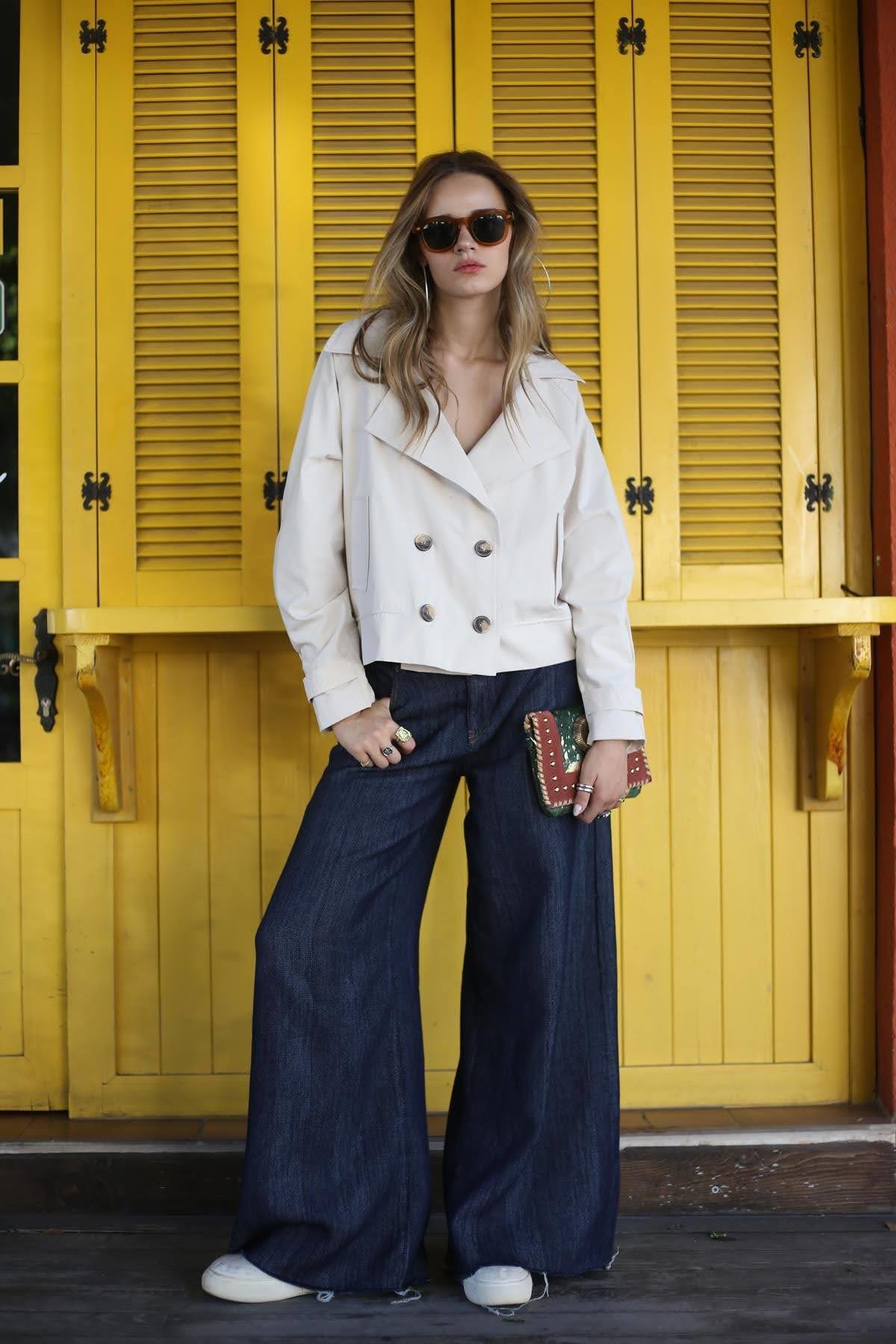 Taş Rengi Kısa Trençkot