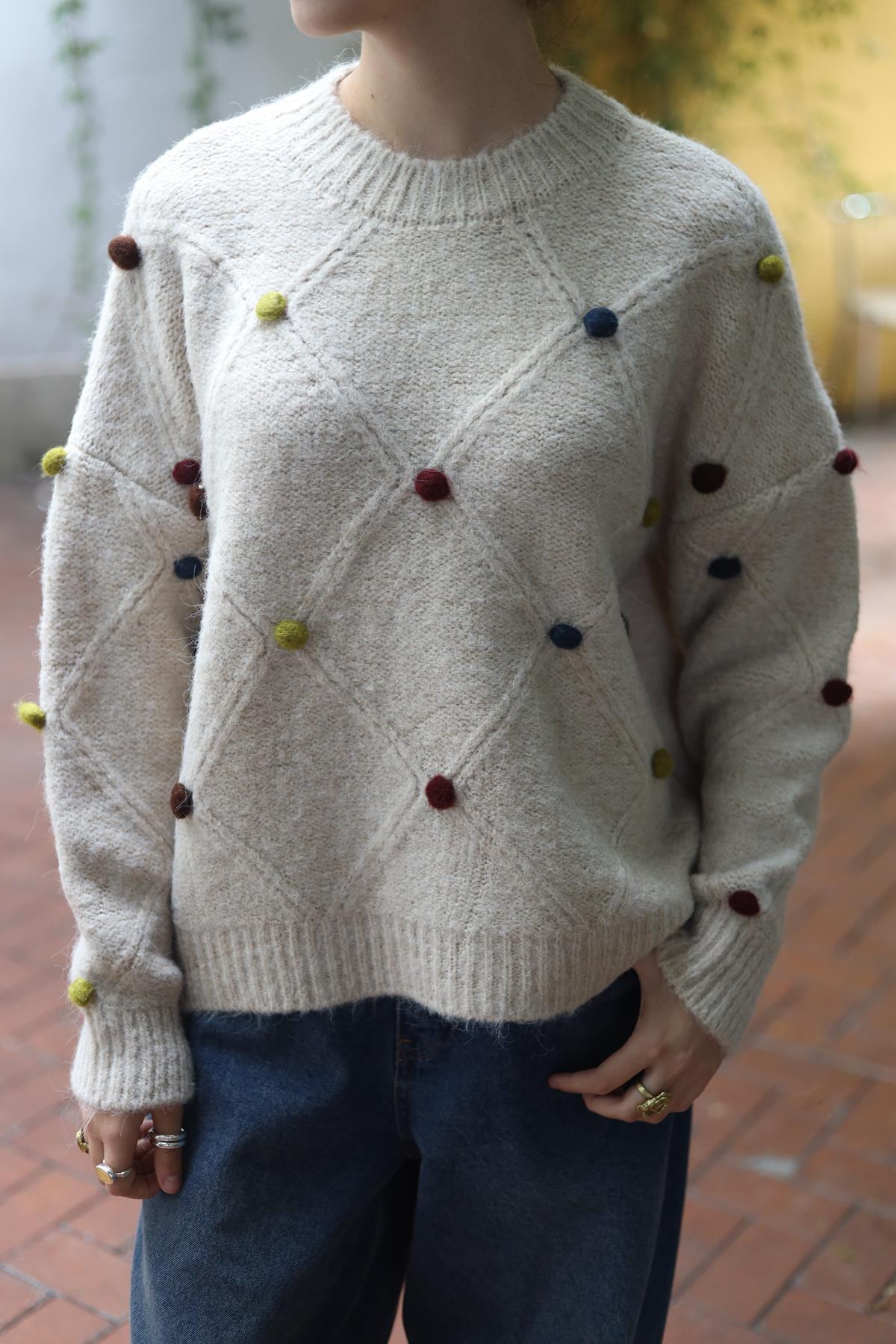 Taş Rengi Ponponlu Kazak (KKZK-RBN-008-AK-TAS-STD)