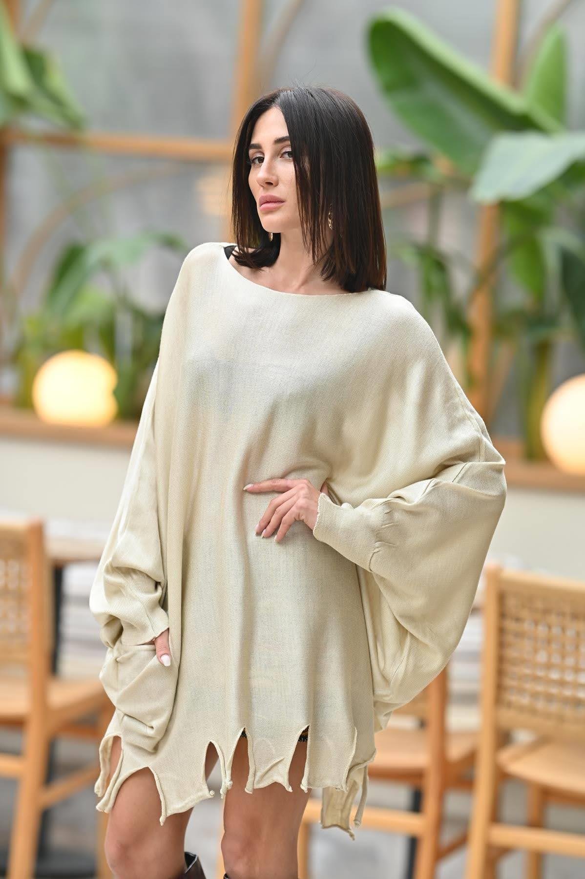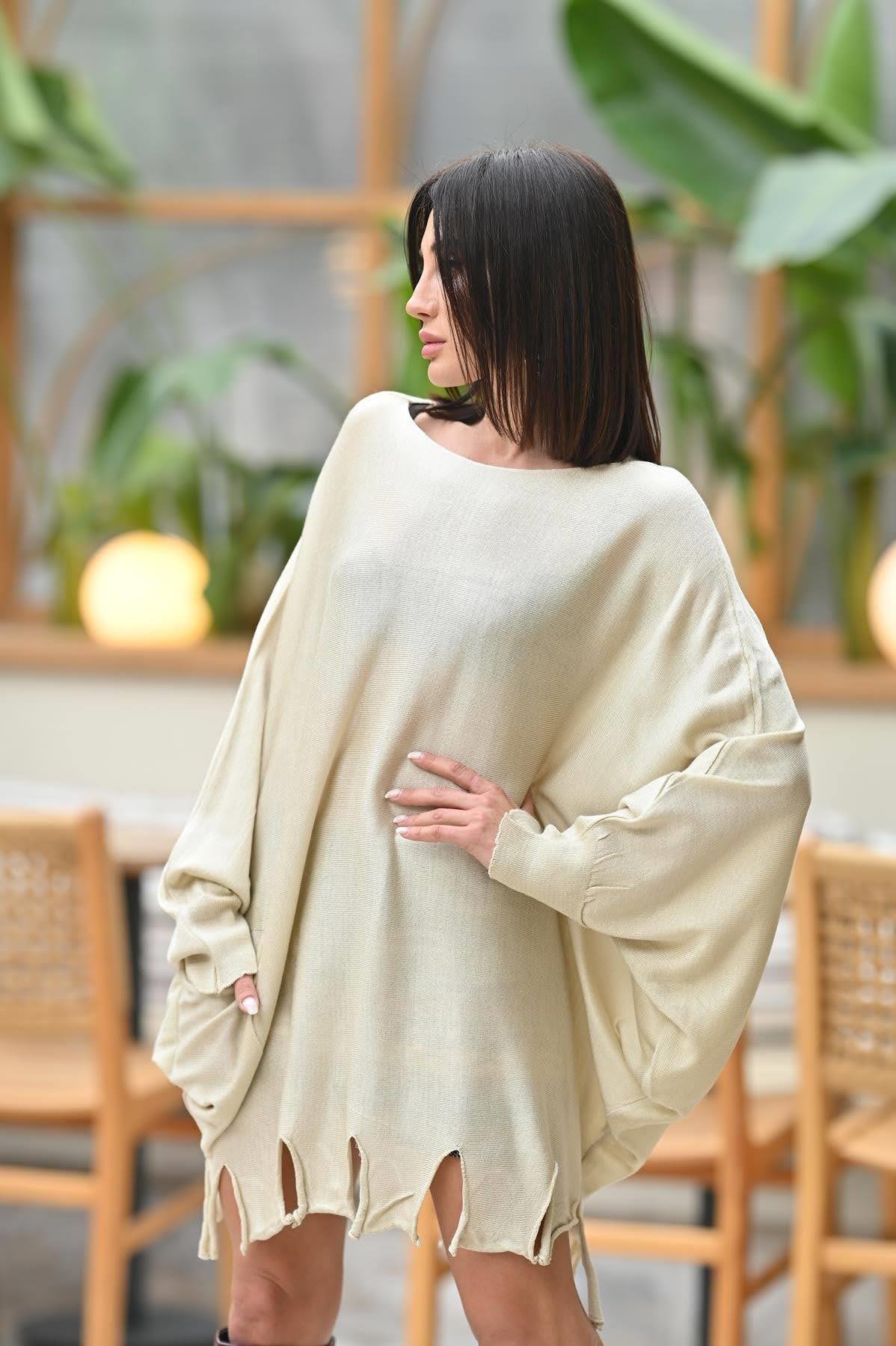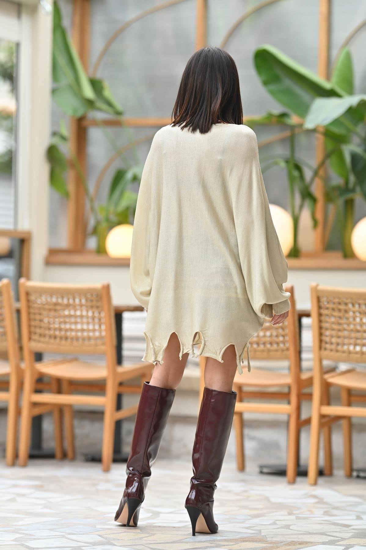 Taş Rengi Püsküllü Triko Tunik