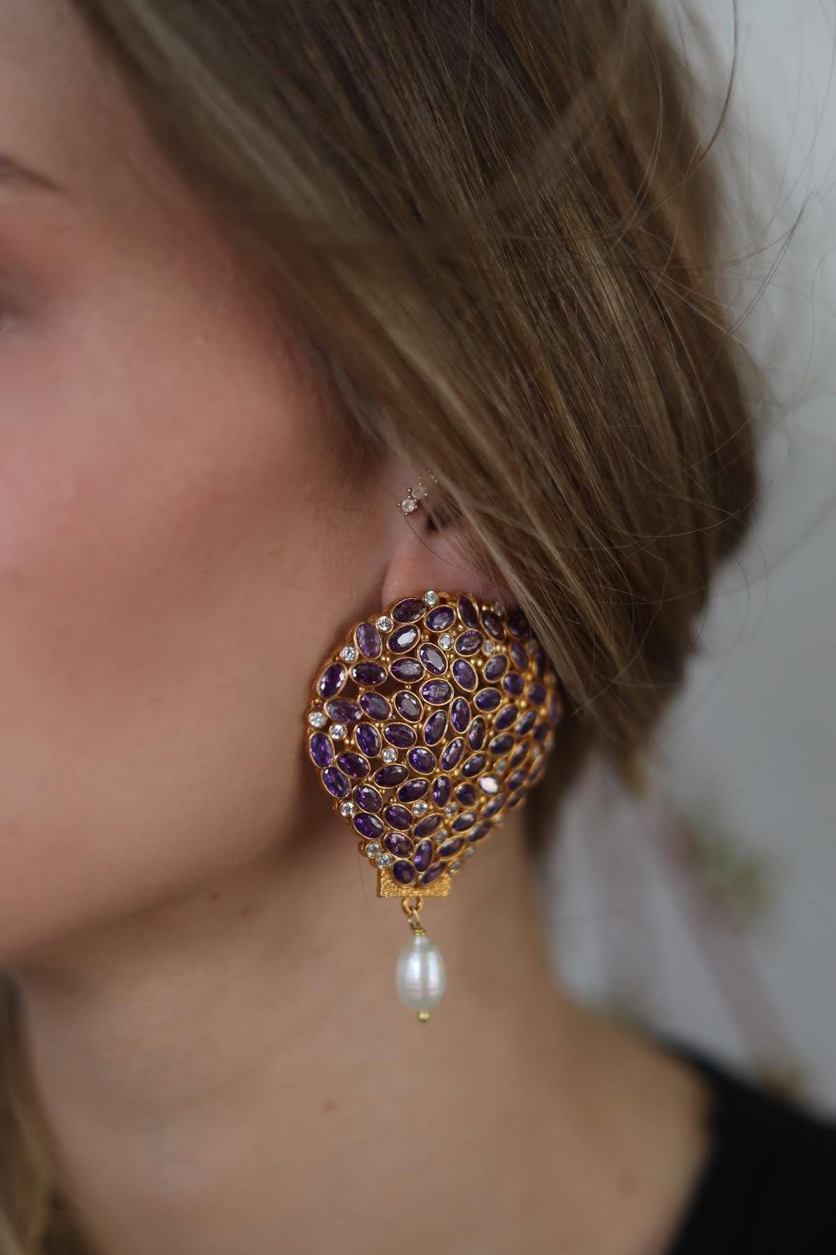 Taşlı İnci Detaylı Balon Küpe (TA-KU-1136)