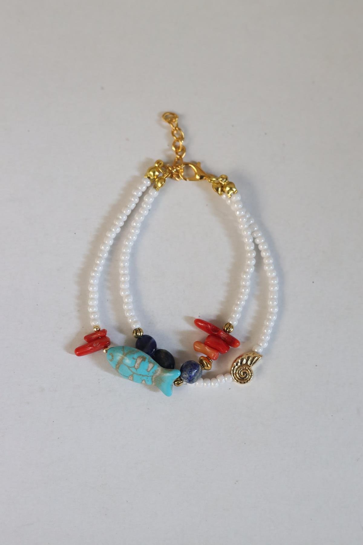 Turkuaz Balık Detaylı İnci Görünümlü Bileklik