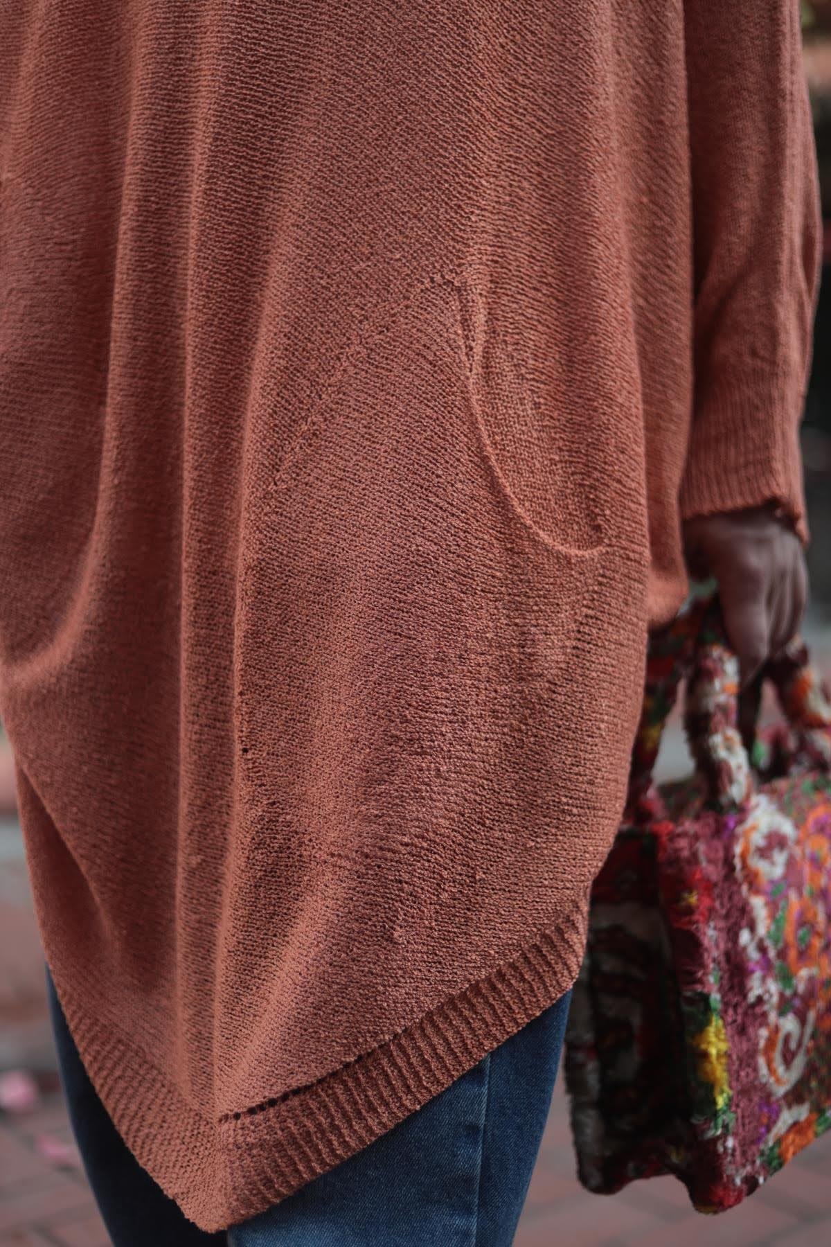 Turuncu Oval Kesim Cepli Triko Tunik