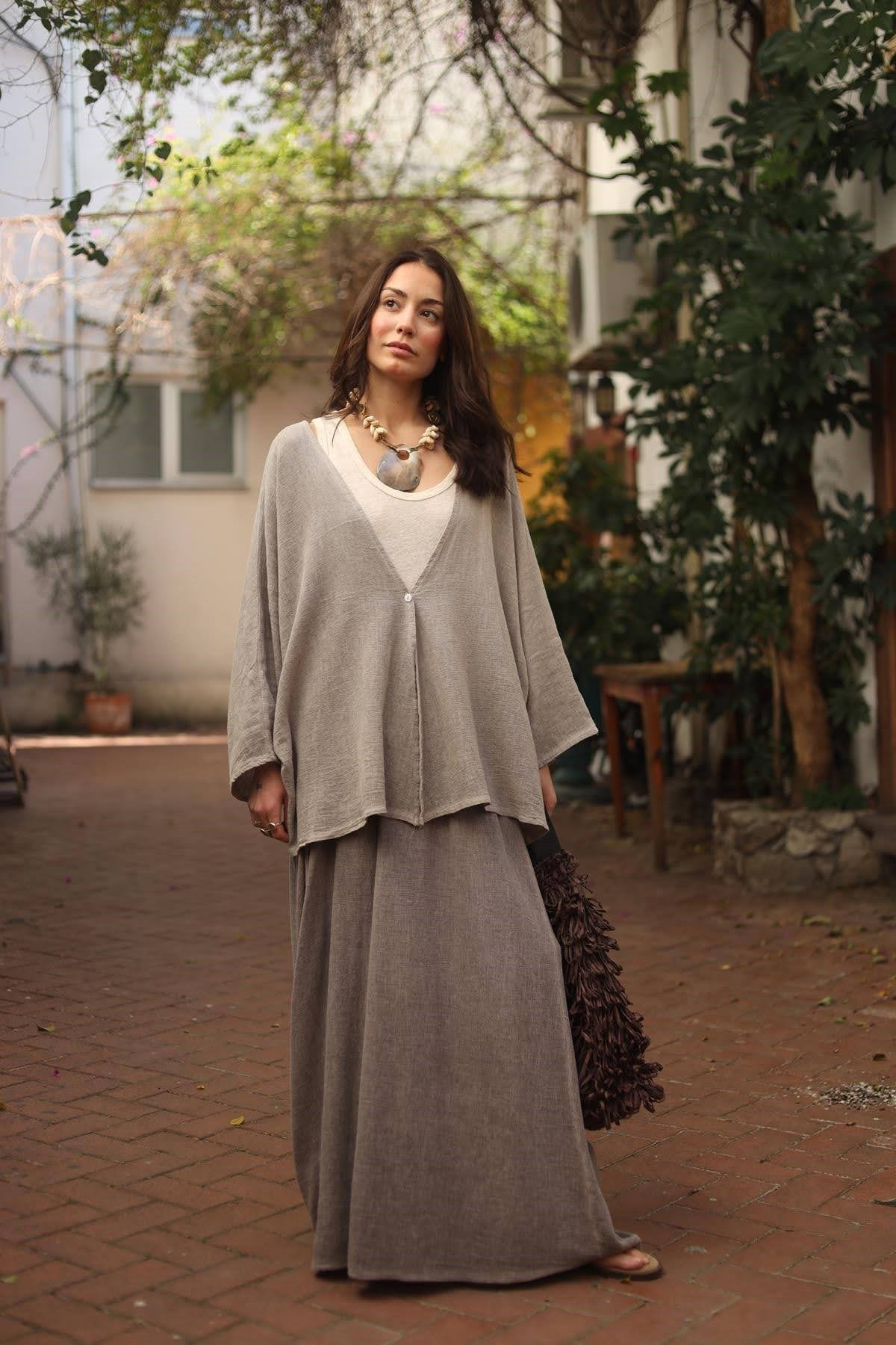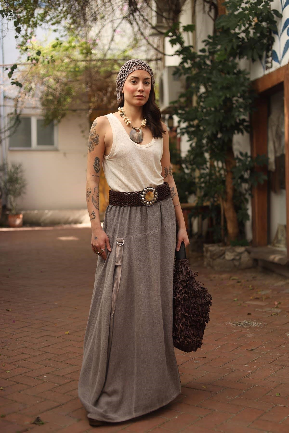 Vizon Rengi Ayarlanabilir Askılı Soft Keten Etek