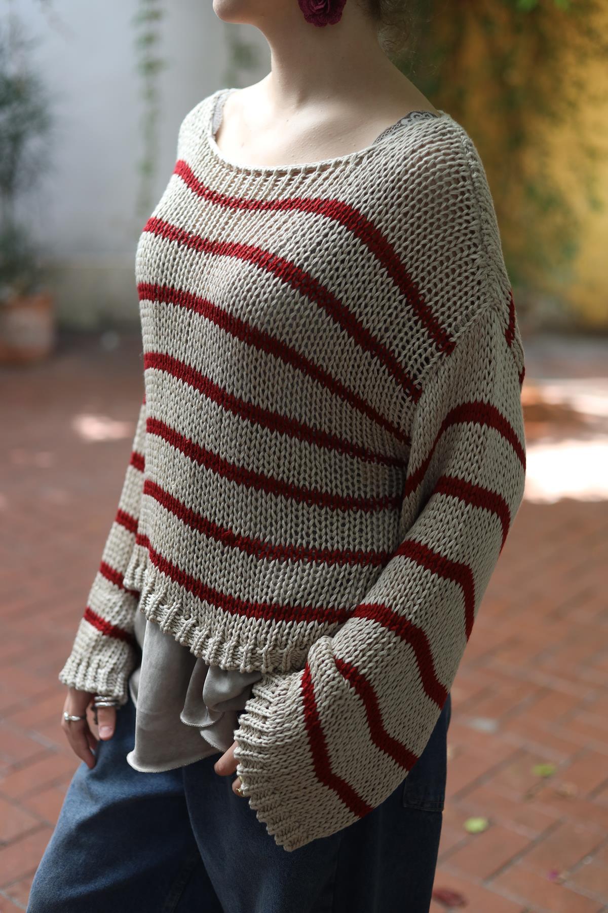 Vizon Rengi Çizgili Bisiklet Yaka Kazak (KKZK-CDC-003-AK-VR-STD)