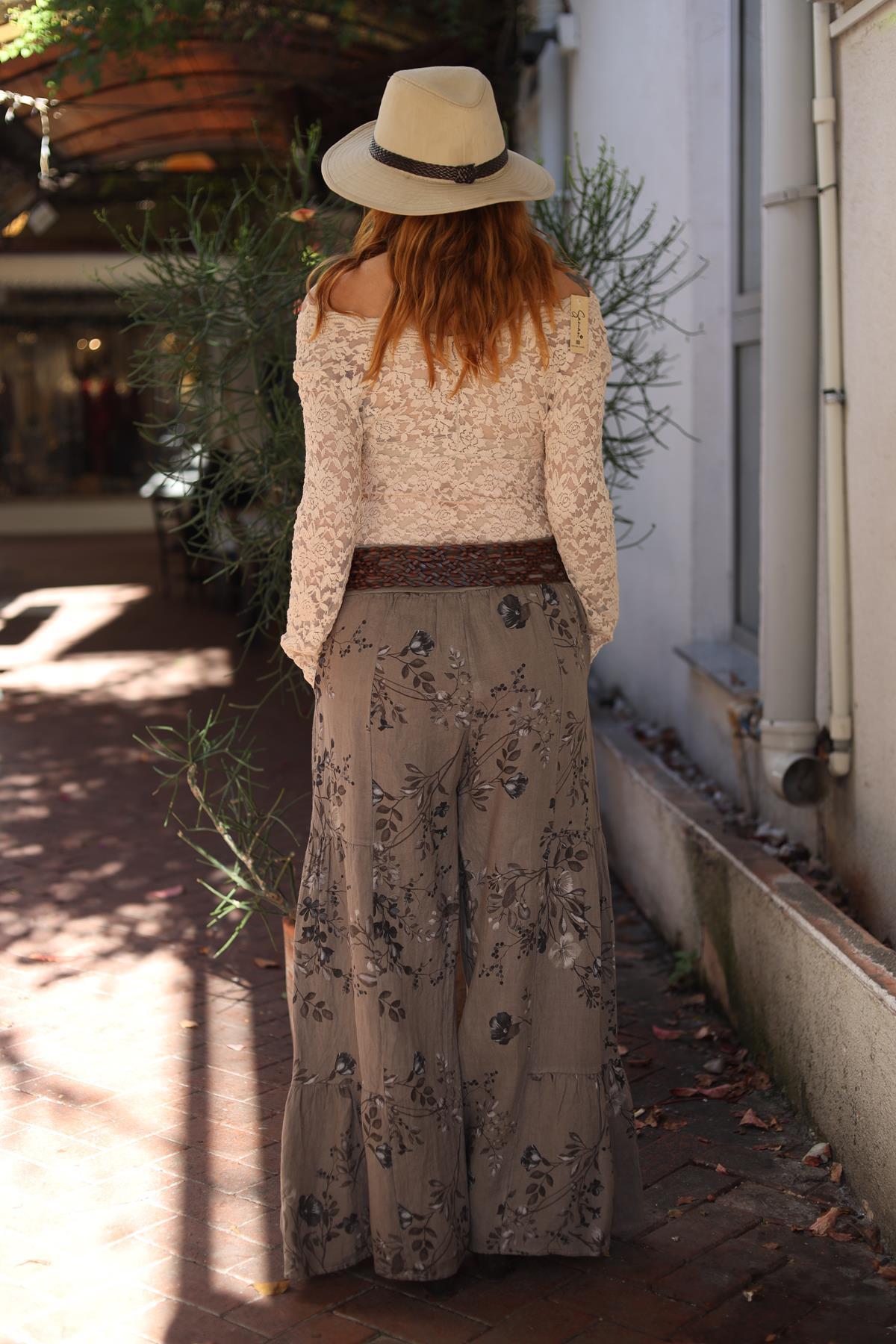 Vizon Rengi Desenli Dikiş Detaylı Keten Pantolon