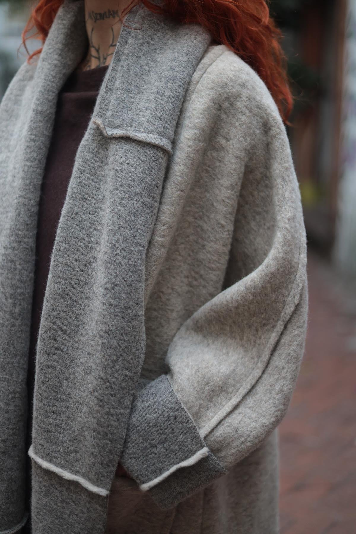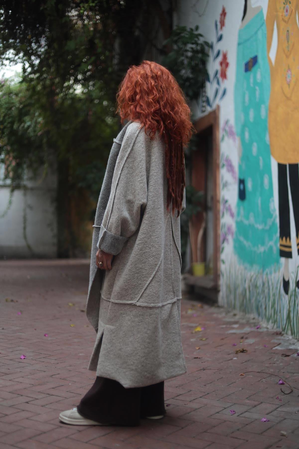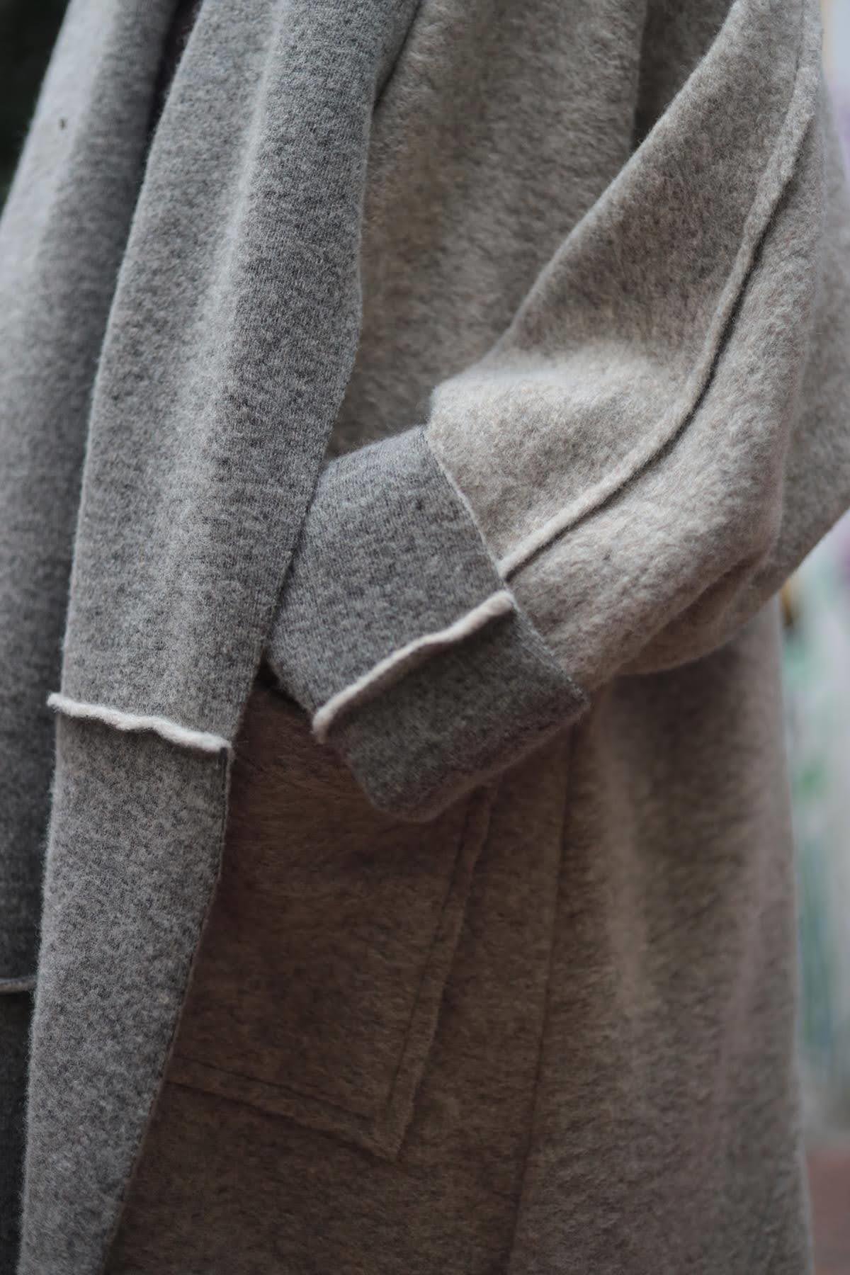 Vizon Rengi Dikiş Detaylı Şal Yaka Keçe Kaban (KKBN-FAL-005-YUN-VR-STD)