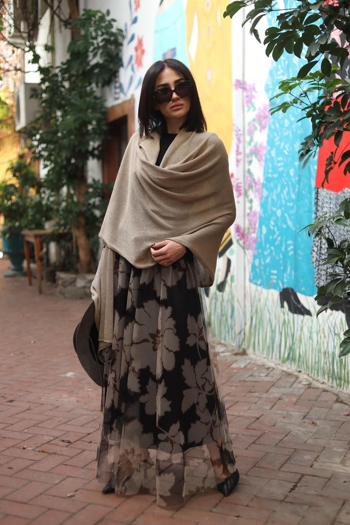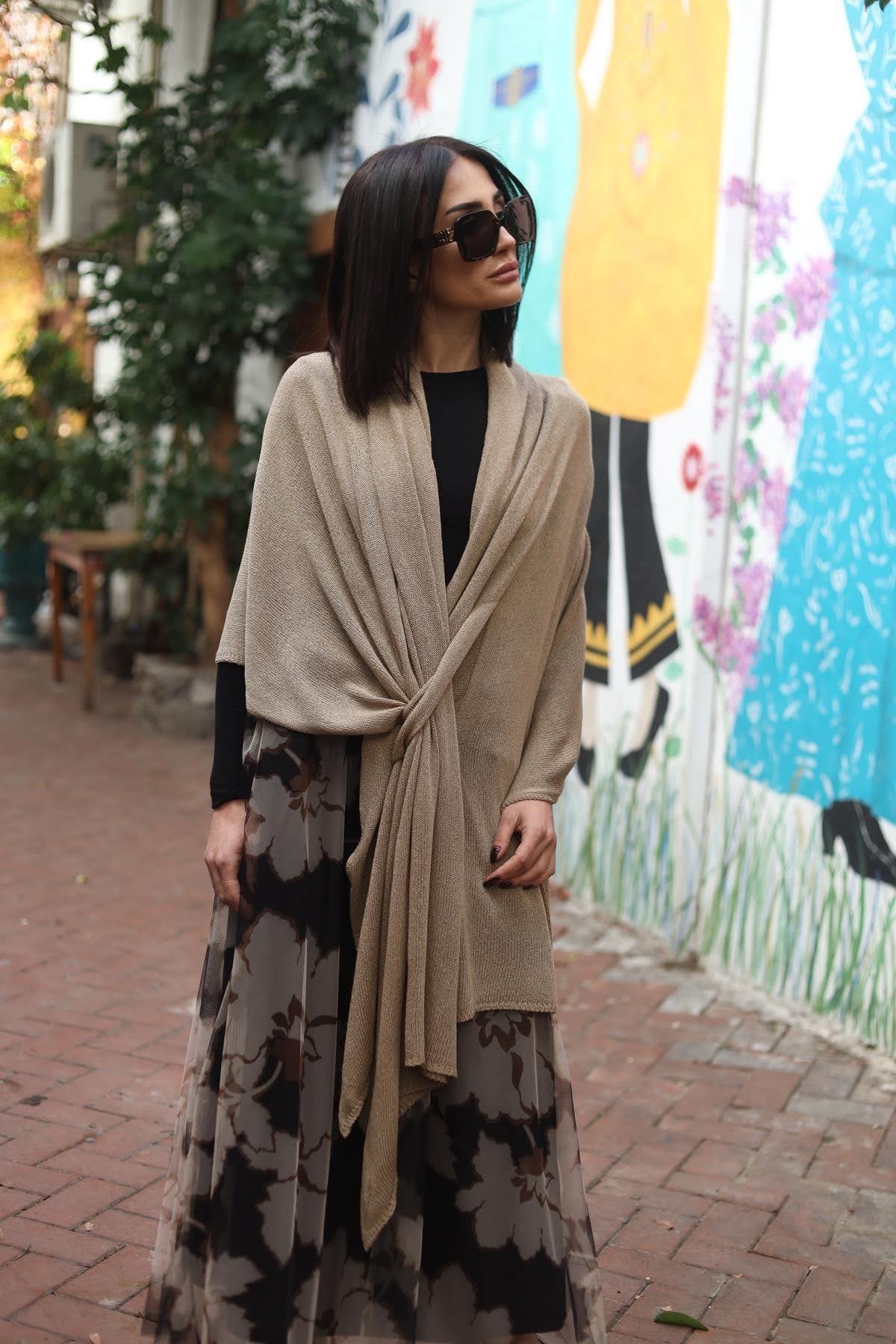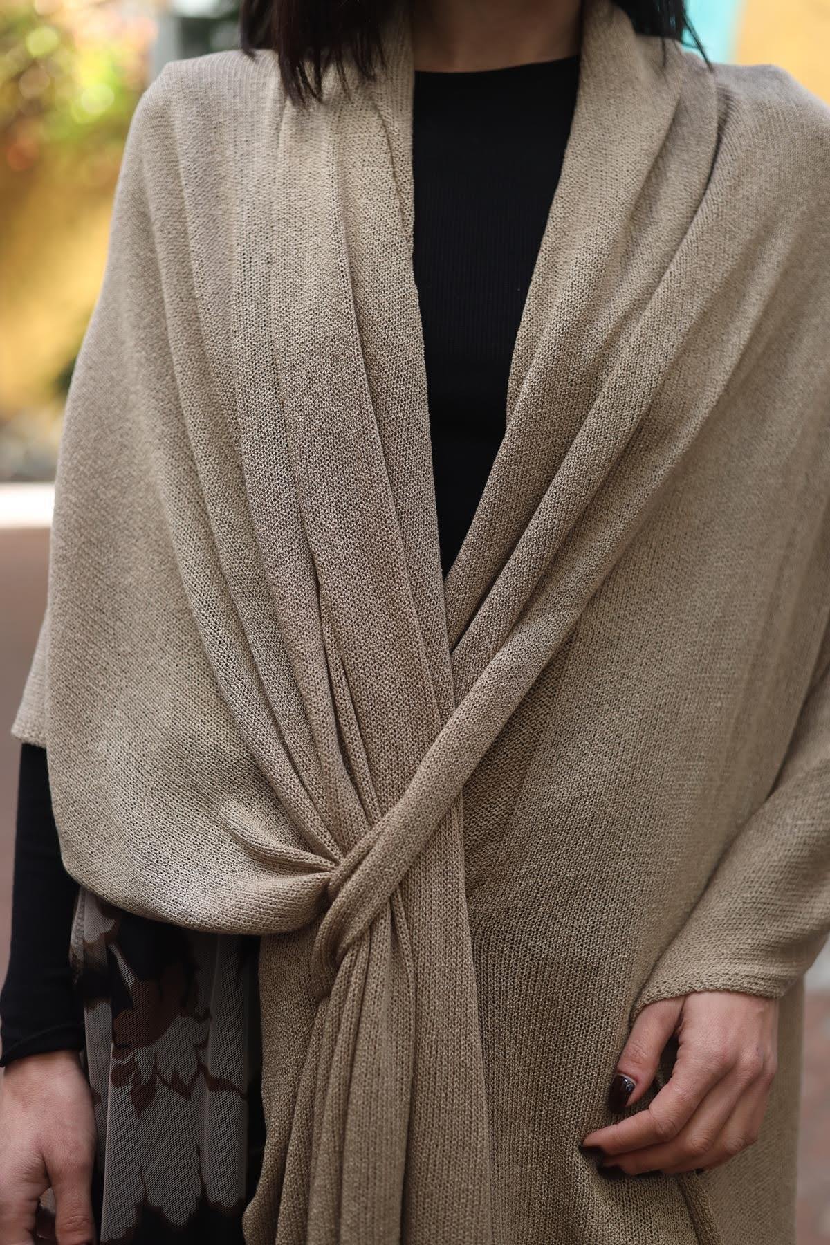 Vizon Rengi Kemerli Triko Panço Şal