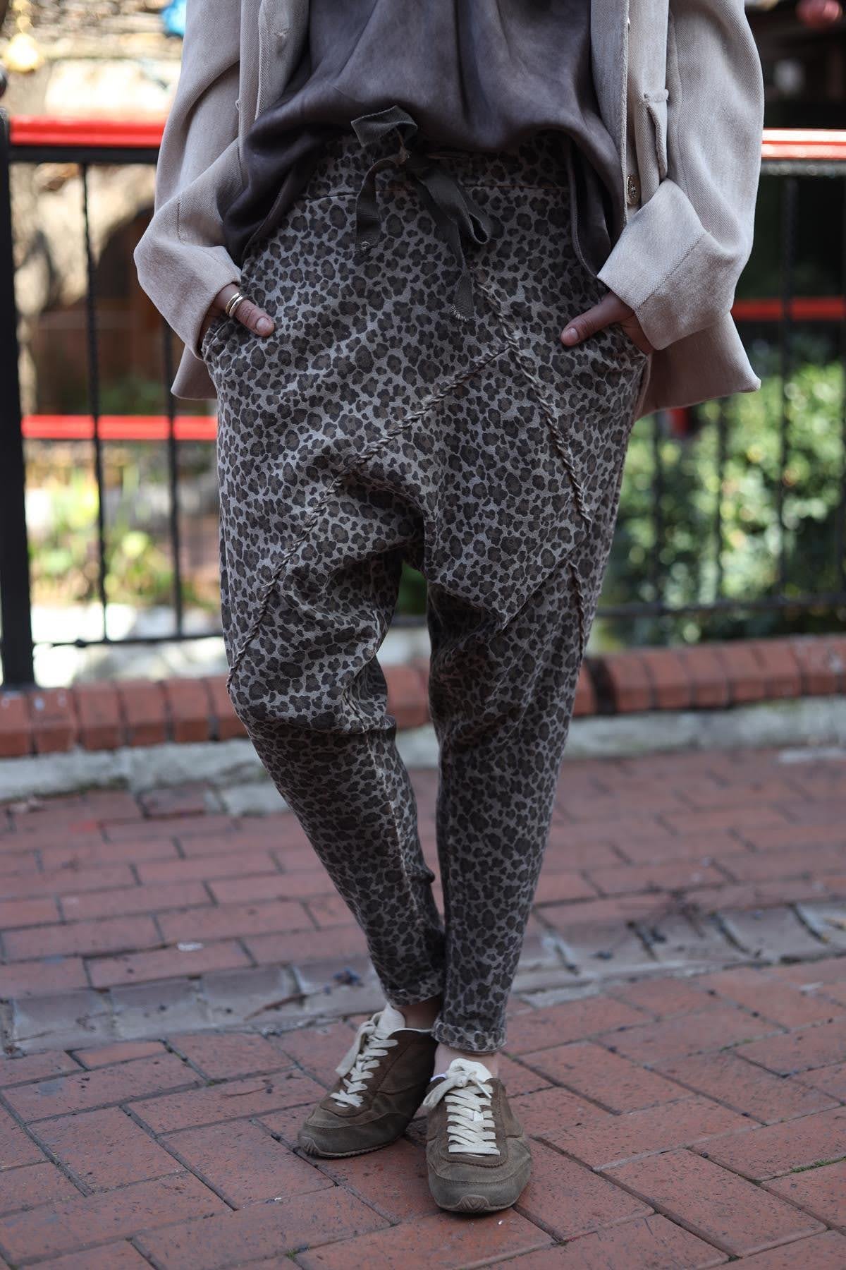 Vizon Rengi Leopar Desenli Önü Dikişli Pantolon