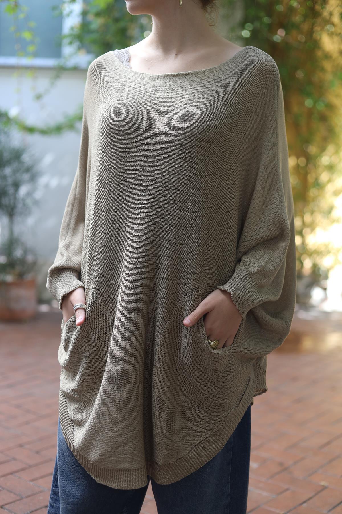 Vizon Rengi Oval Kesim Cepli Triko Tunik