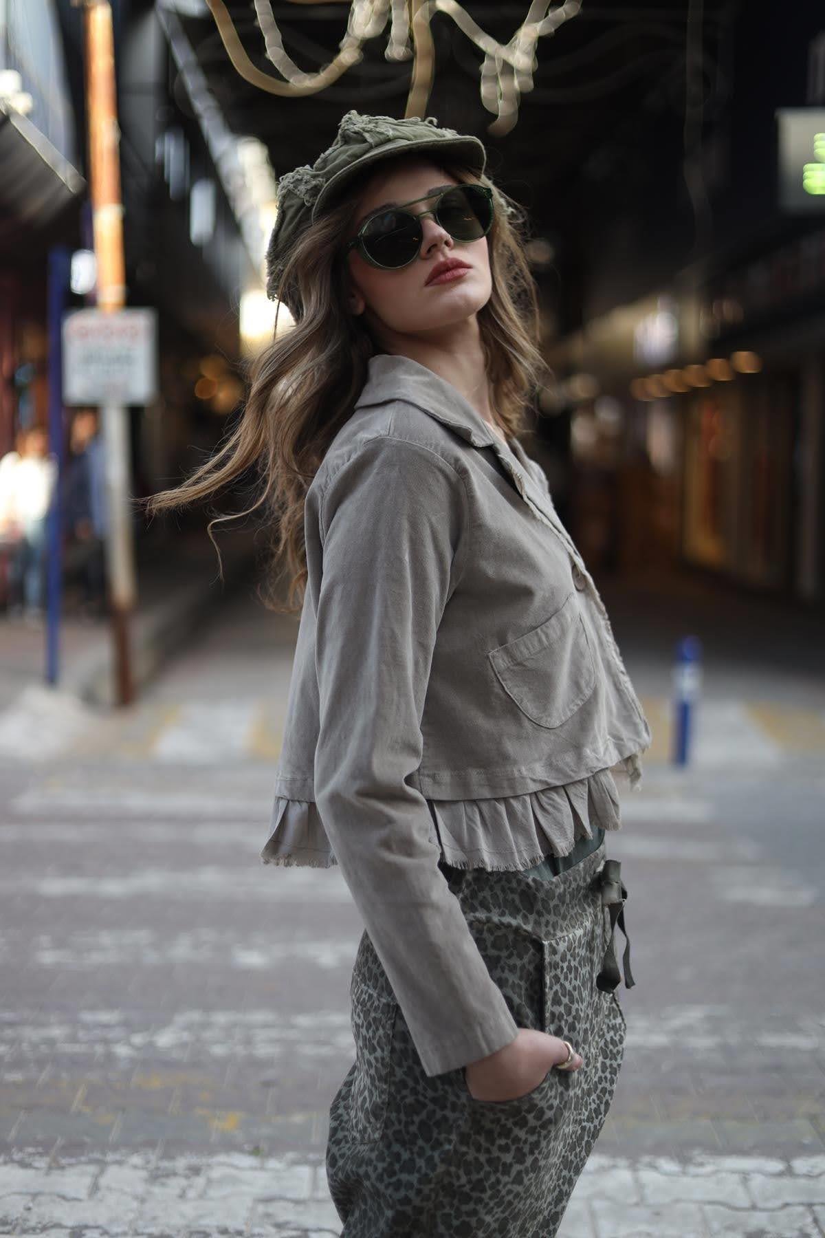 Vizon Rengi Parça Detaylı Kadife Crop Ceket (KC-SIT-002-PA-VR-STD)