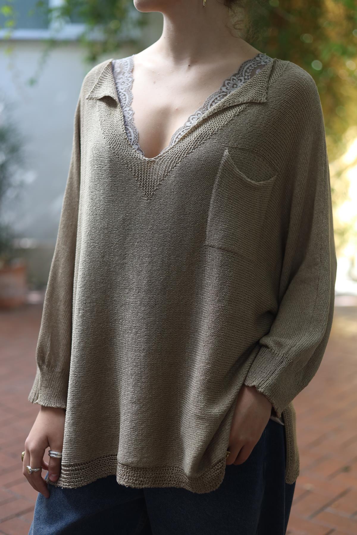 Vizon Rengi Yaka Detaylı Yırtmaçlı Triko Tunik (KTNK-LAM-008-AK-VR-STD)