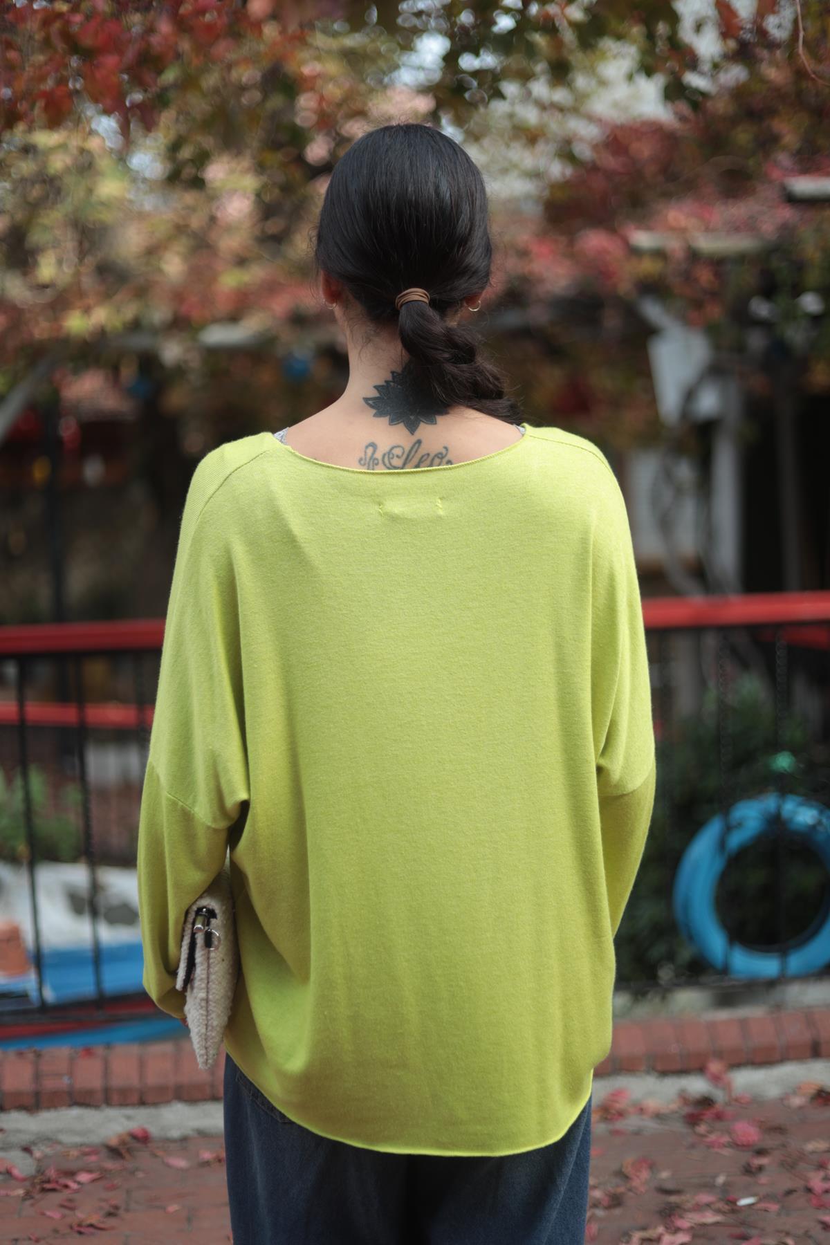 Yağ Yeşili V Yaka Yumuşak Doku Angora Bluz (KB-PM-017-VI-YYE-STD)