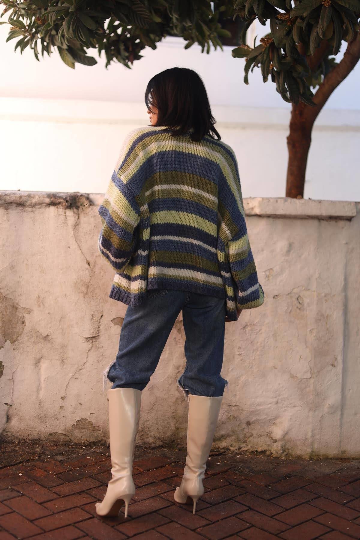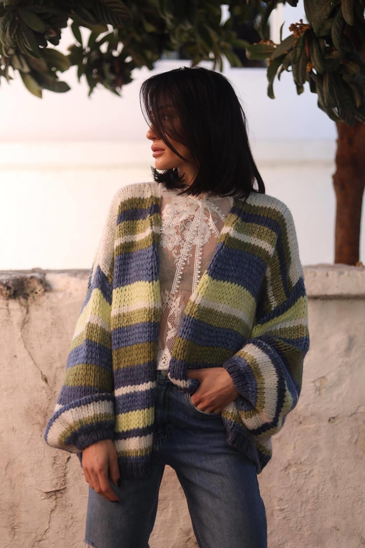 Yeşil Çizgili Örme Hırka (KH-CDC-001-AK-YE-S)
