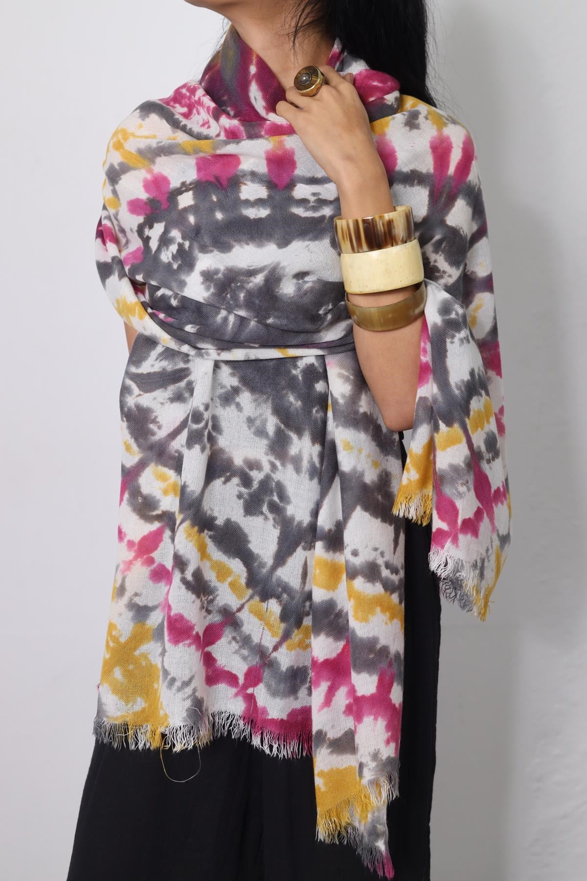 Fuşya Batik Desenli Pamuk Şal