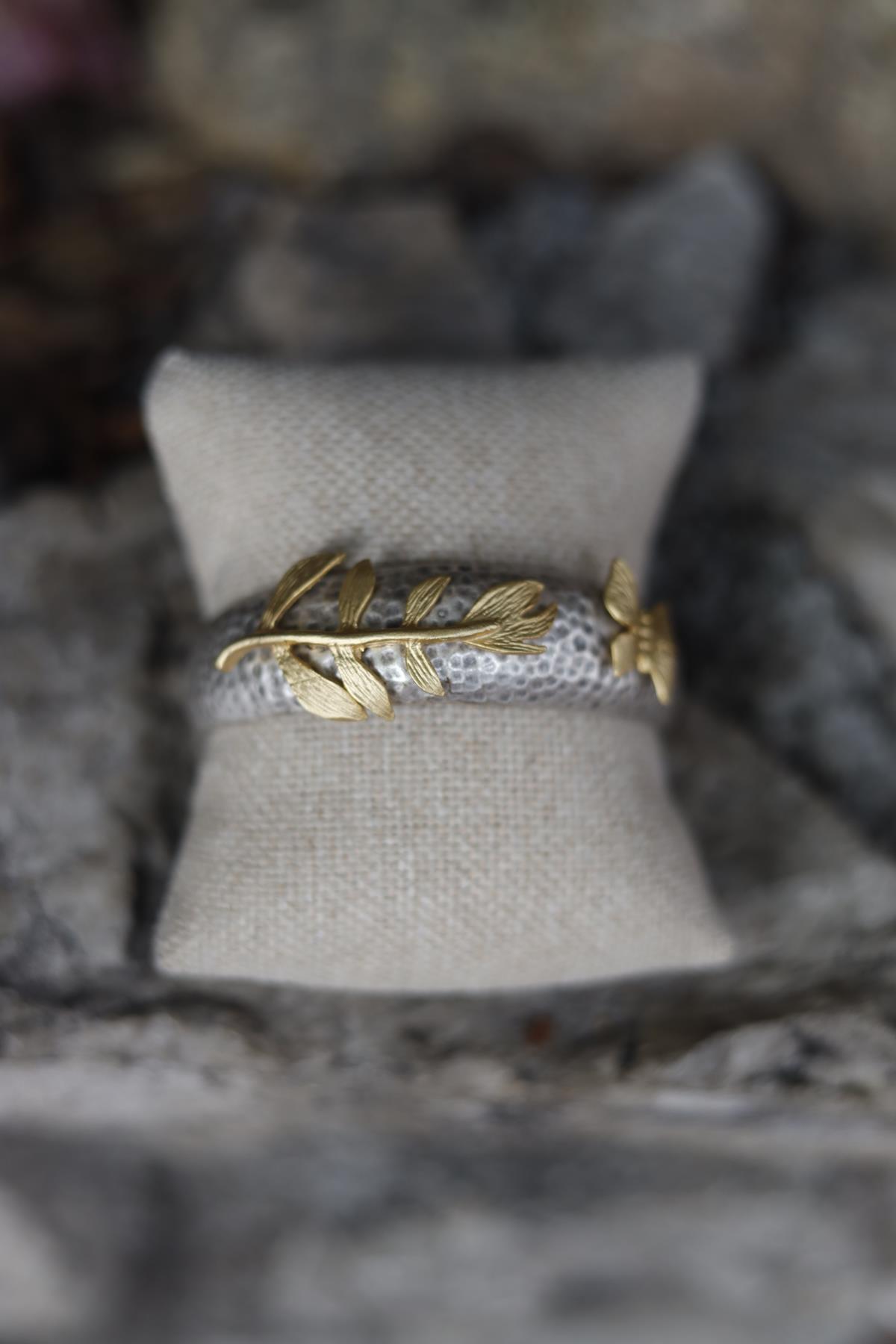 Gold Leaf Detail Silver Plated Bracelet