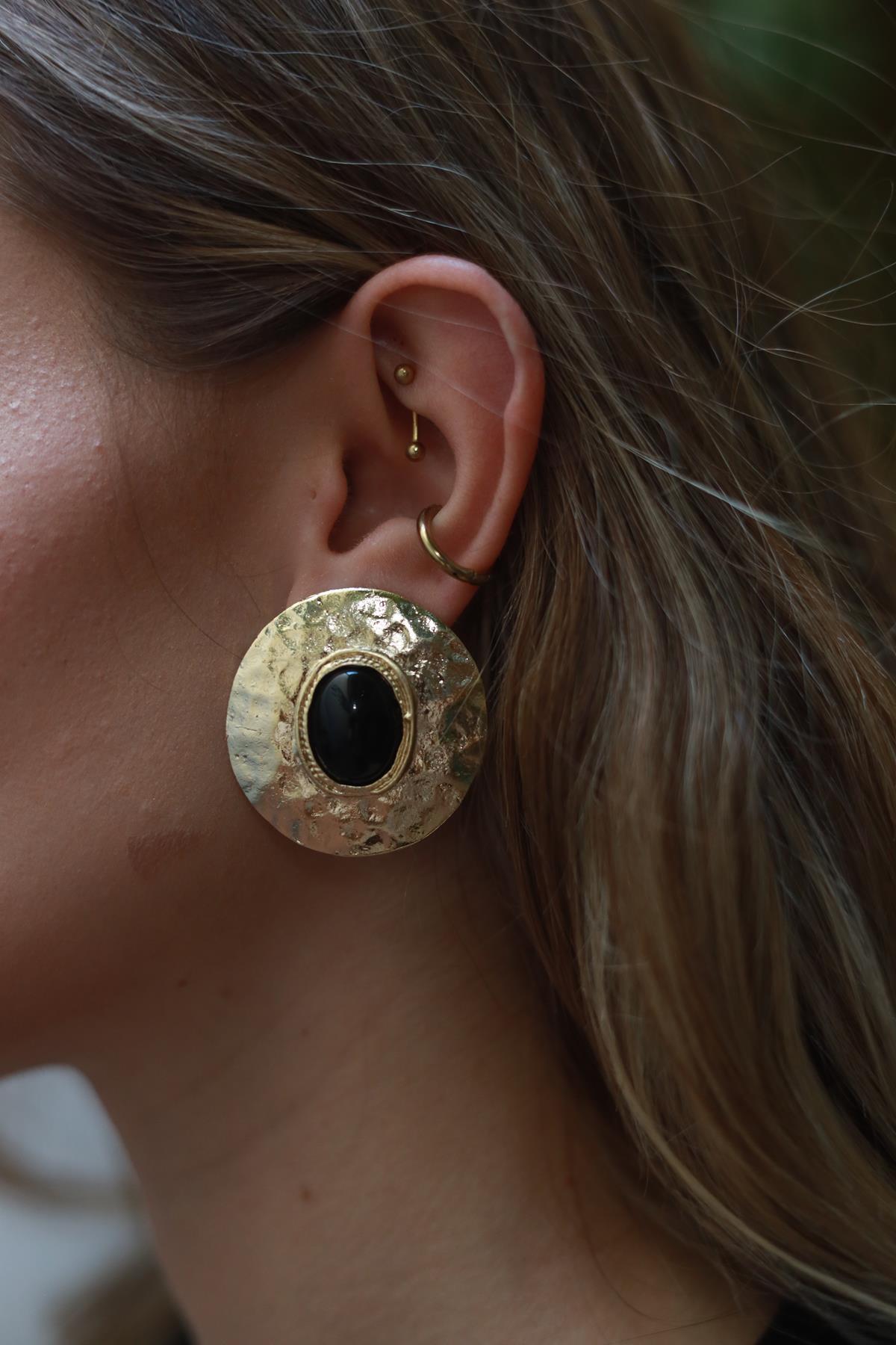 Gold Rengi Siyah Taş Detaylı Klipsli  Küpe