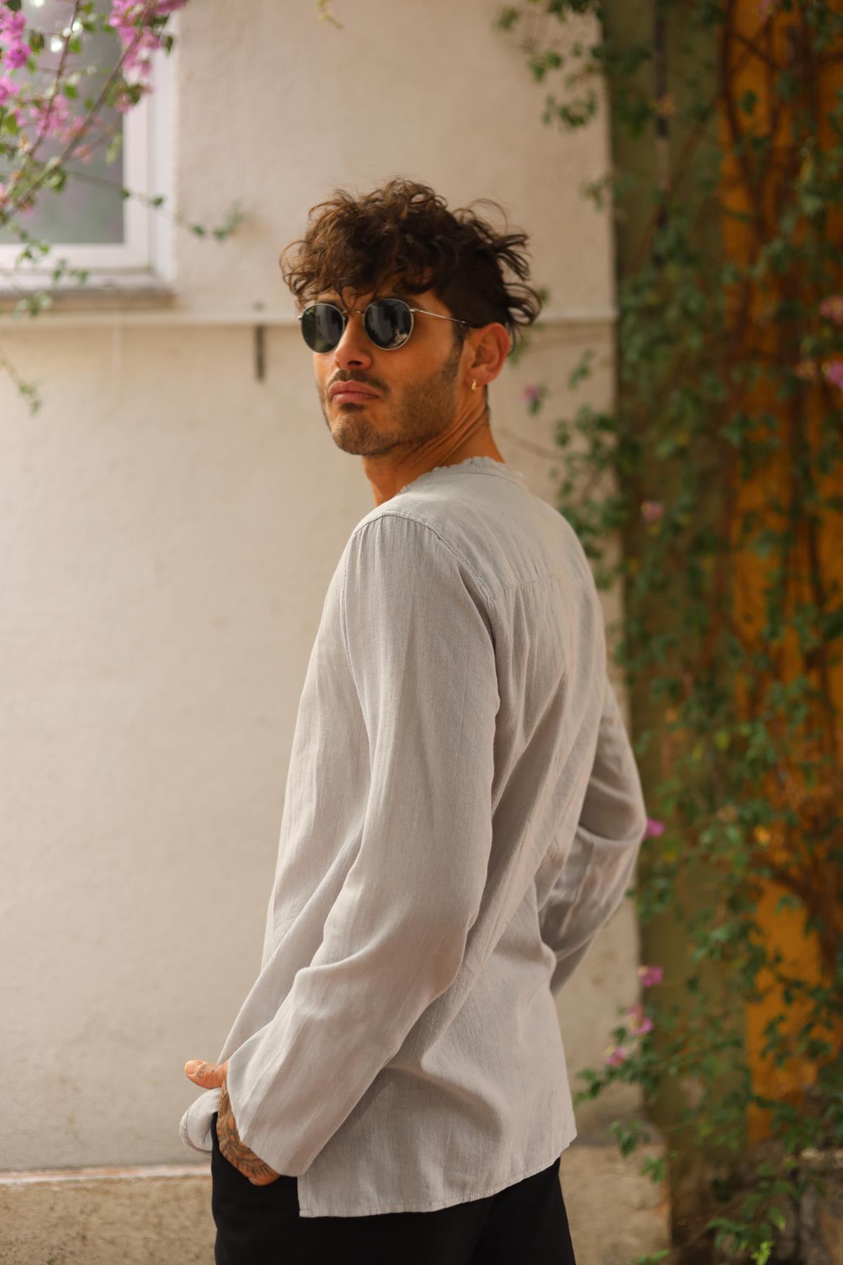 Gray Mandala Pattern Men's Shirt (EG-TO-012-PA-GR-S)