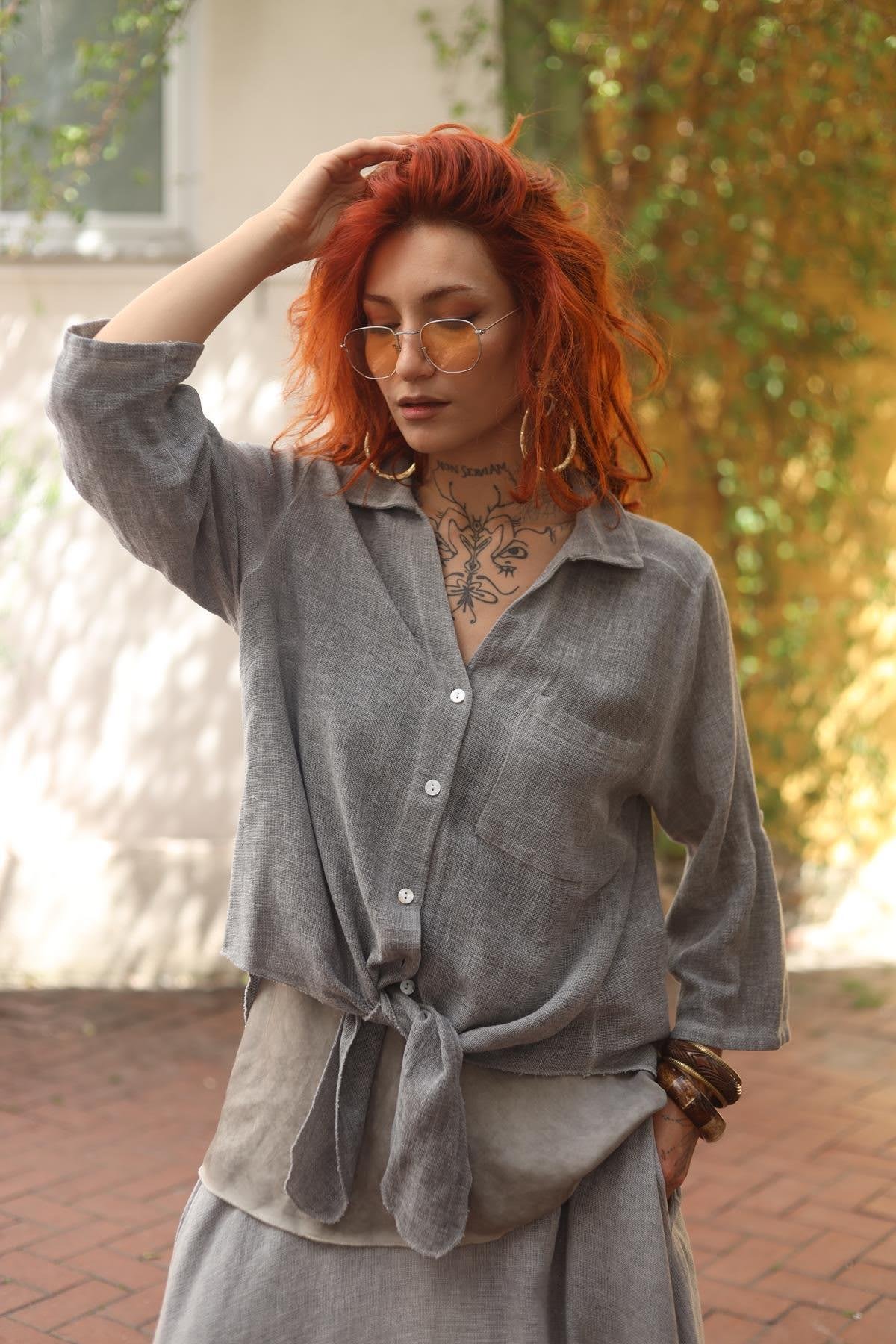 Gray Pocket Detailed Linen Shirt