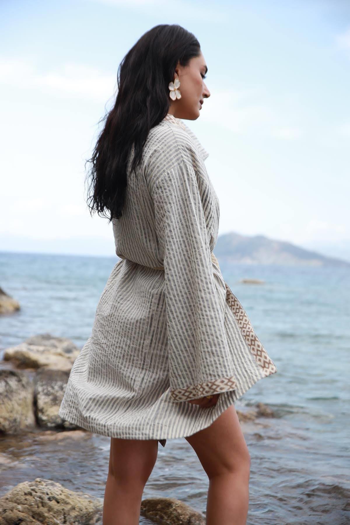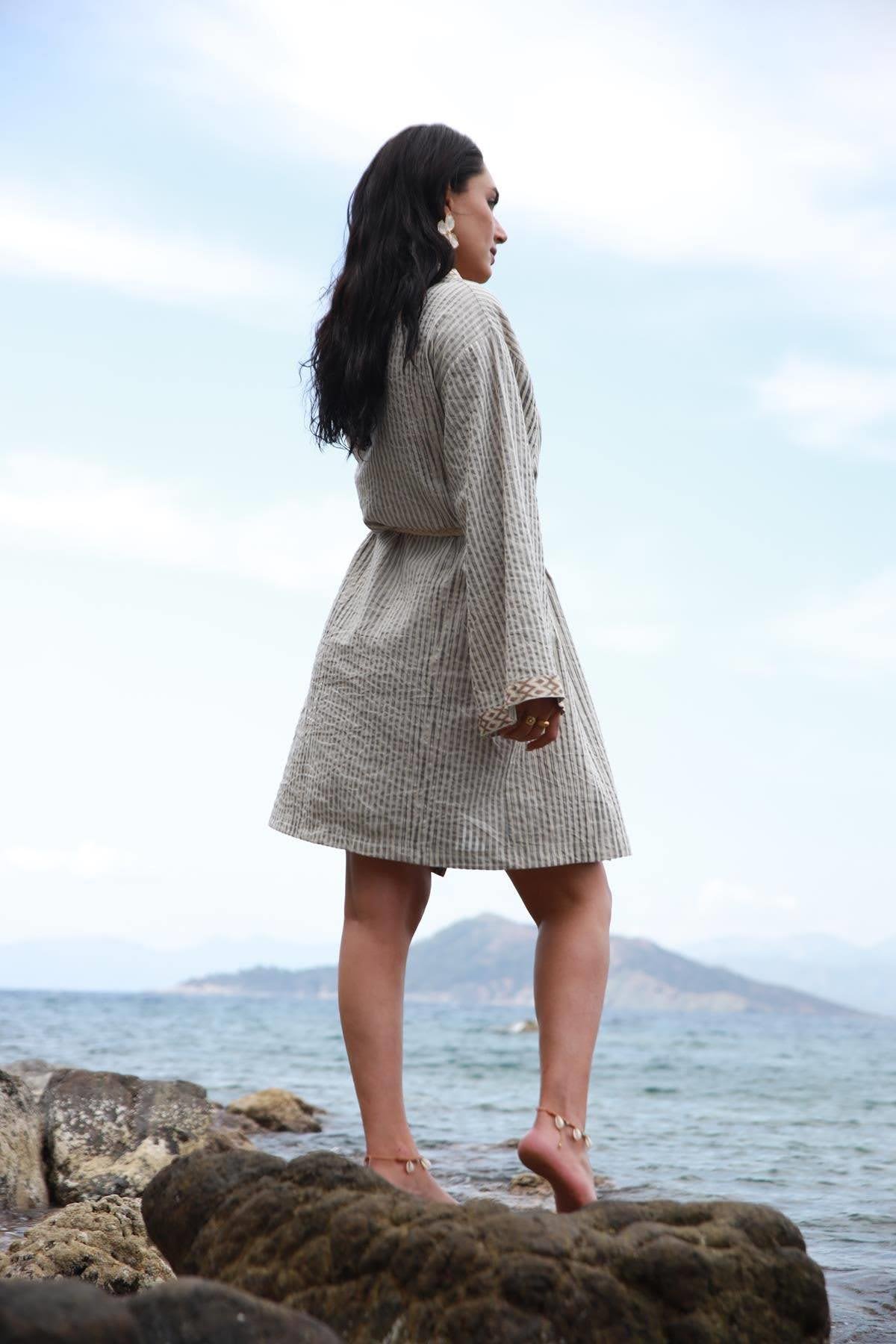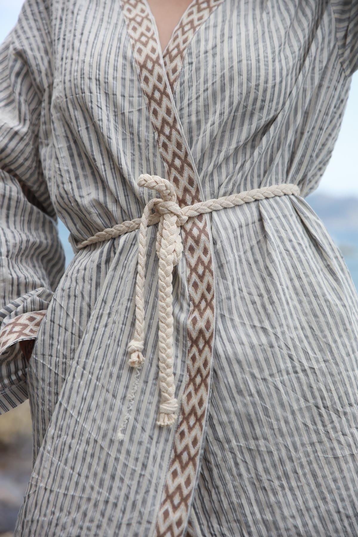 Gray Striped Belt Detailed Kaftan (KKFN-MM-002-PA-GR-STD)