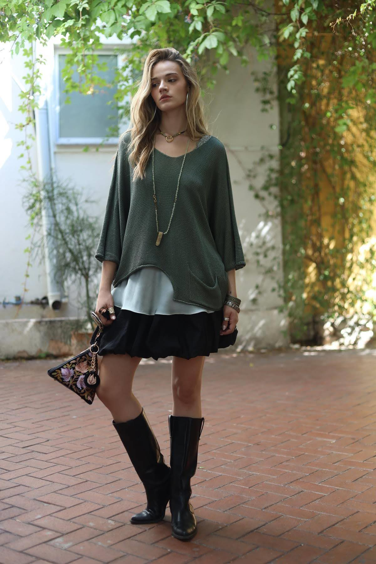 Haki Asimetrik Kesim Cepli Triko Bluz (KB-FAL-025-PA-HA-STD)