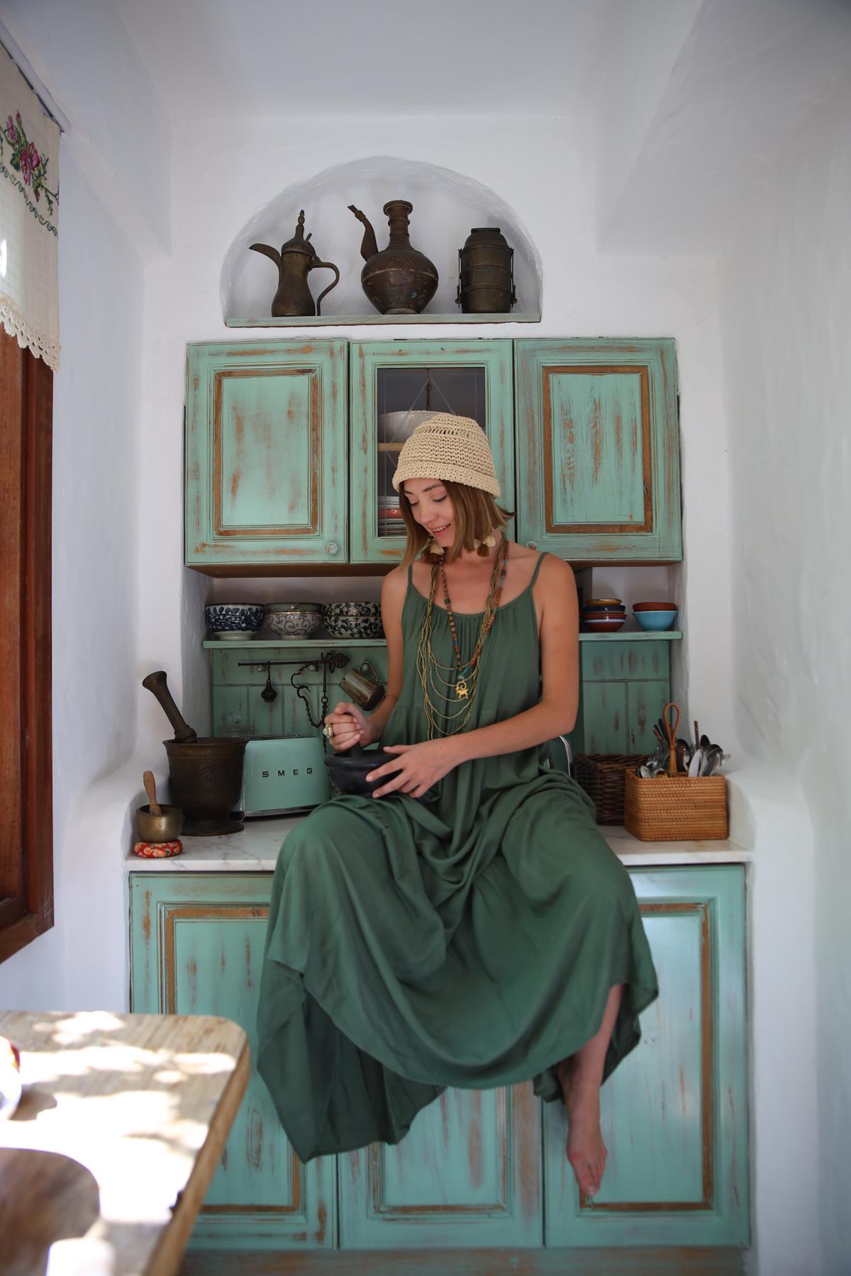 Haki Ayarlanabilir Askılı Maxi Elbise (KE-CR-006-VI-HA-S)