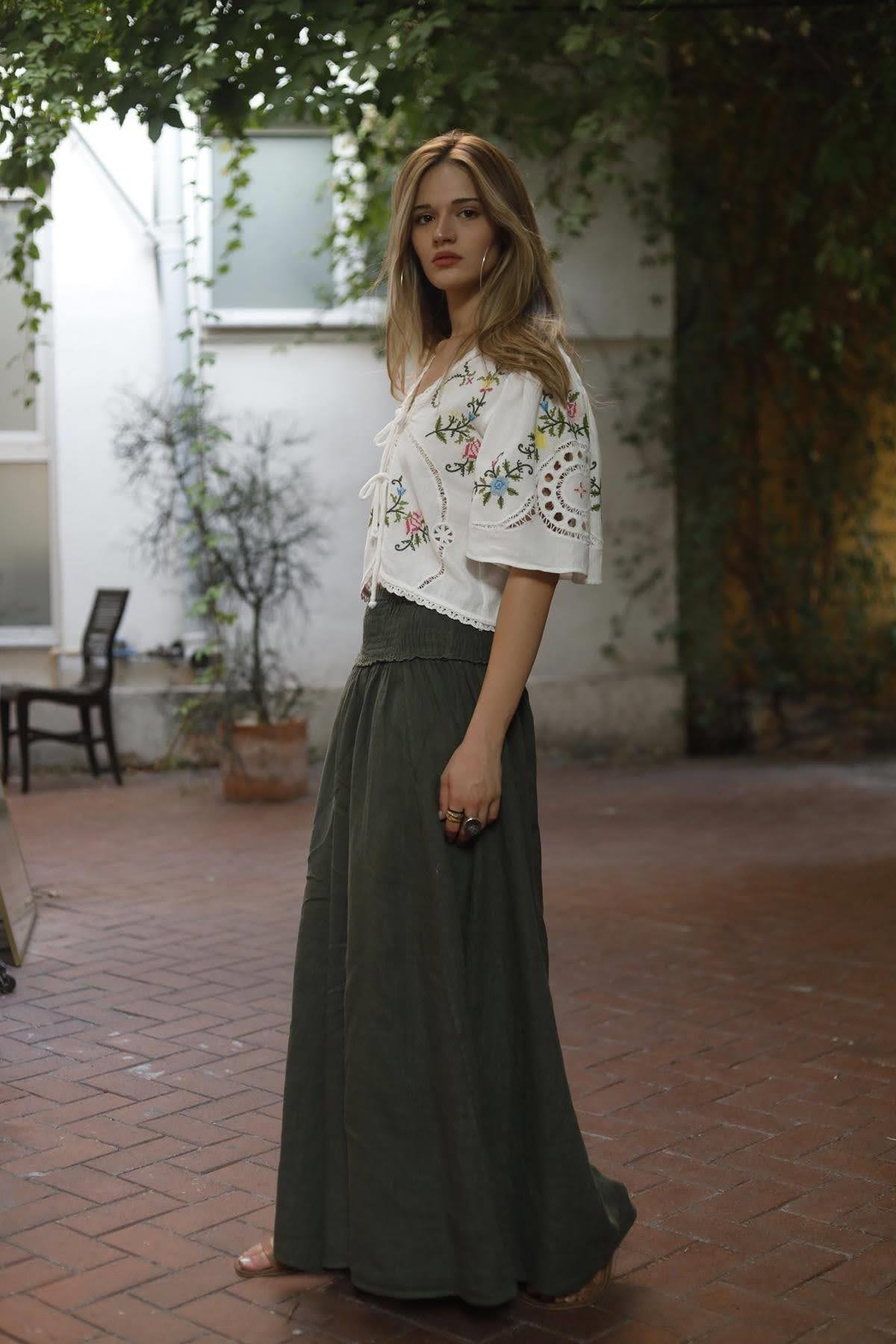 Haki Beli Gipeli Dikiş Detaylı Keten Pantolon