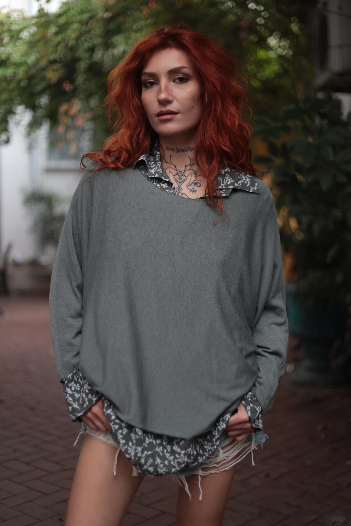 Haki Çiçek Desenli Gömlekli Bluz (KB-PM-072-VI-HA-STD)