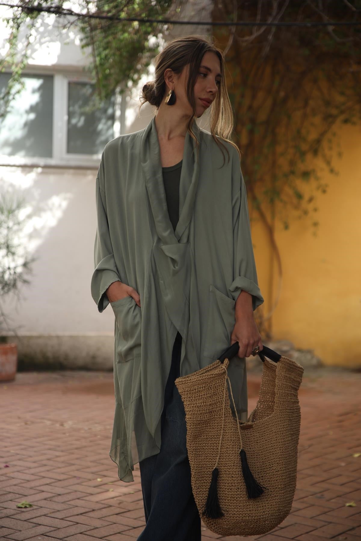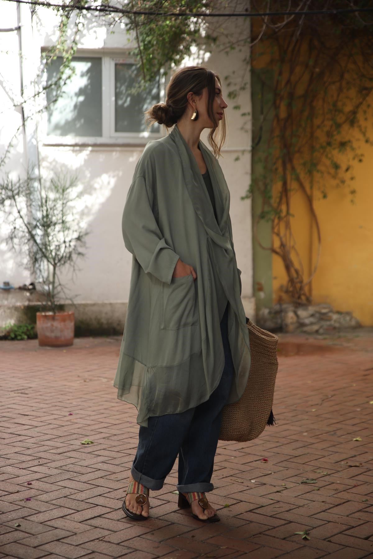 Haki İpek Yaka Judith Tunik (KTNK-DOT-003-VI-HA-STD)
