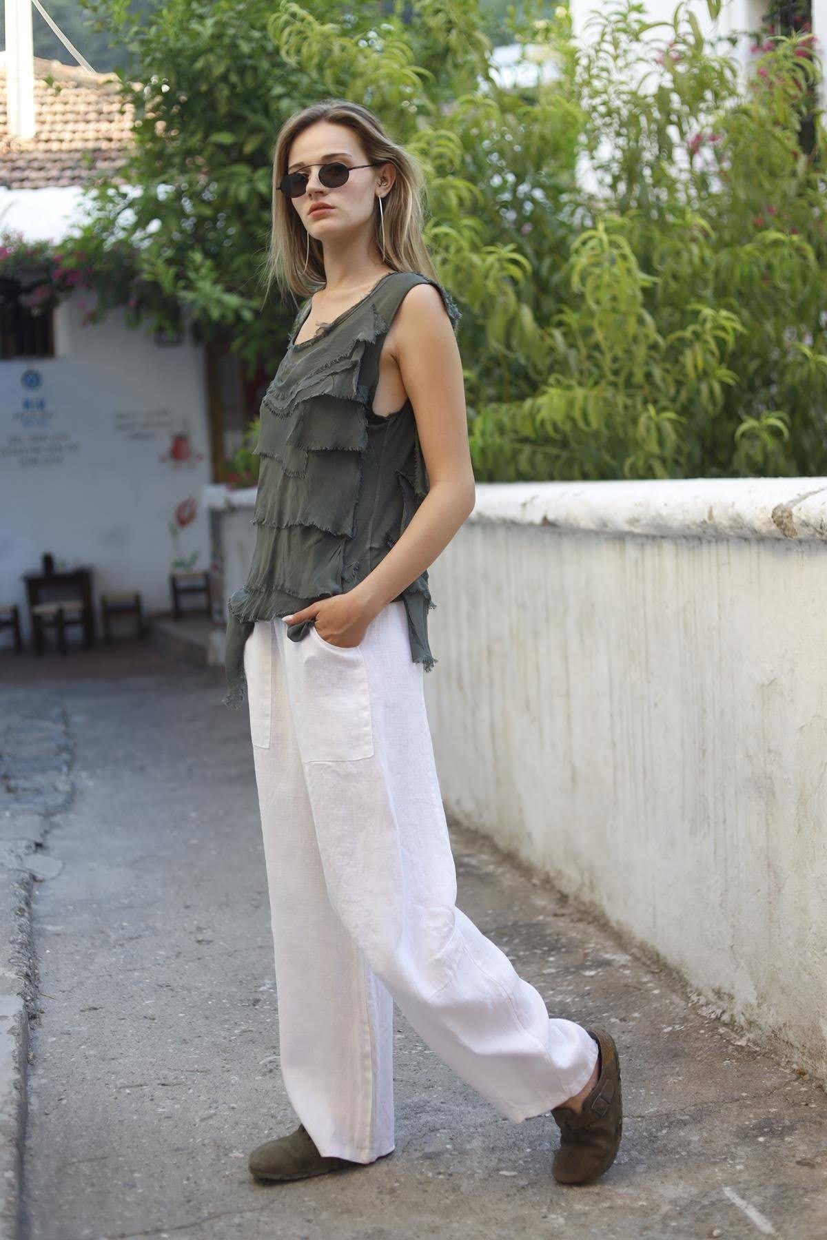 Haki Kolsuz Kat Kat İpek Bluz (KB-PM-053-IP-HA-STD)