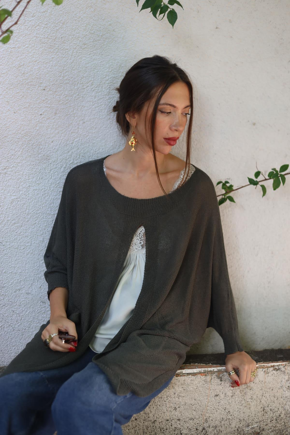 Haki Önü Yırtmaçlı Cepli Triko Tunik (KTNK-LAM-010-AK-HA-STD)