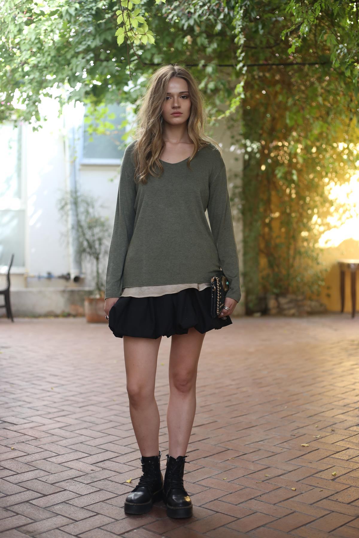 Haki Yumuşak Doku V Yaka Bluz (KB-PM-061-VI-HA-STD)